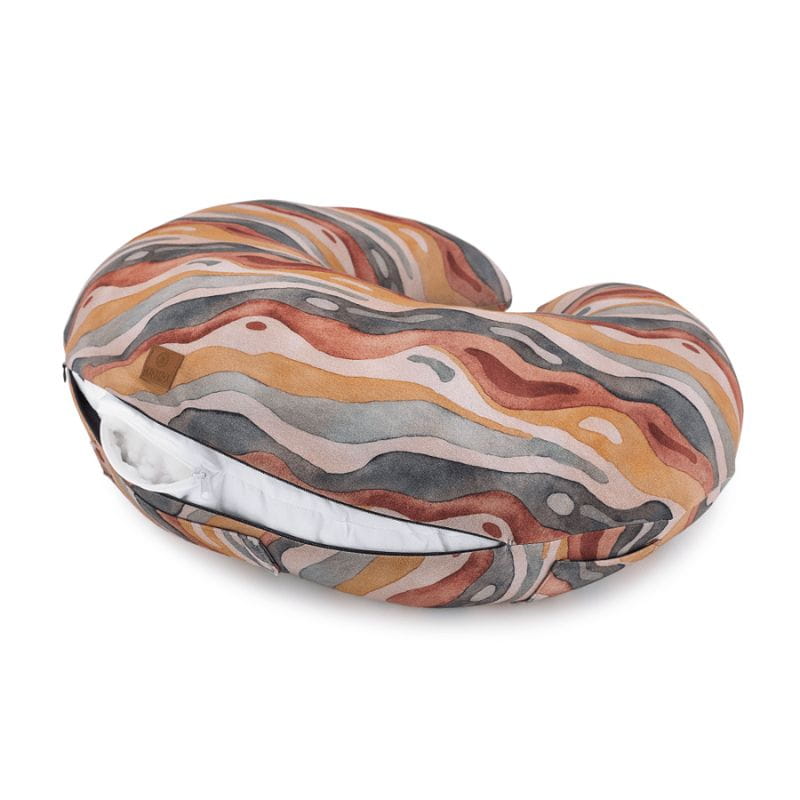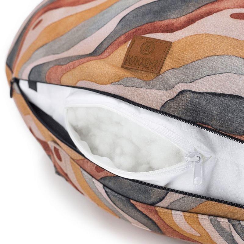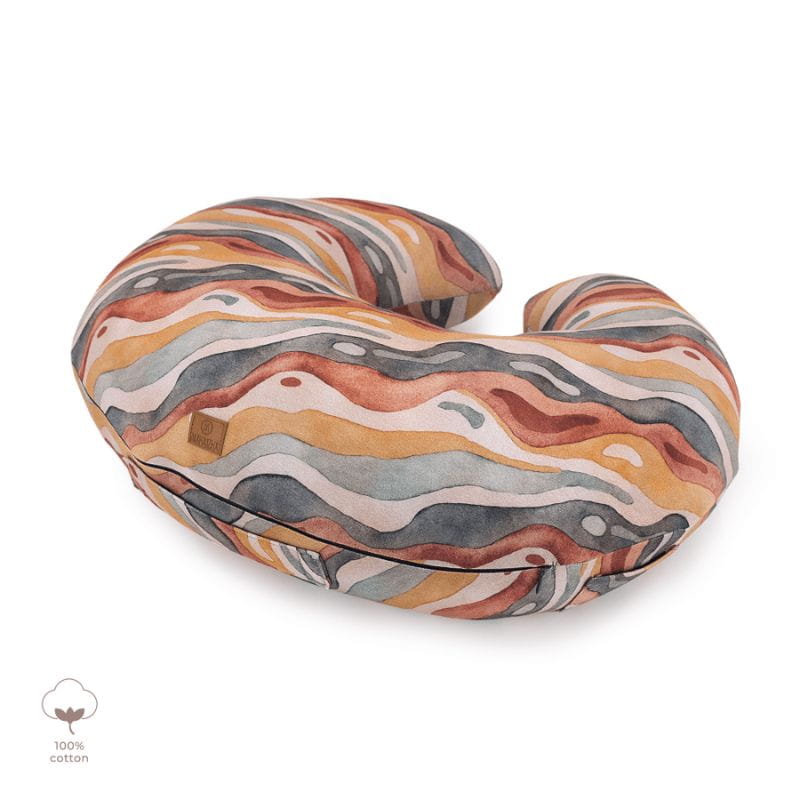 Poduszka do karmienia Makaszka wykonana jest obustronnie z najwyższej jakości dzianiny bawełnianej, która nie spiera się i nie traci swoich właściwości nawet po wielokrotnym praniu. Poszewka zapinana na bezpieczny suwak jest łatwa do zdjęcia z poduchy i wyprania. W środku bawełniany rogal wypełniony antyalergicznym puchem silikonowym zapewniającym miękkość, a także sprężystość. Wewnętrzna część zapinana jest na niewielki suwaczek dający możliwość regulacji ilości wypełnienia. Dzięki temu poducha idealnie dopasowuje się kształtem i rozmiarem do maluszka i osoby karmiącej.