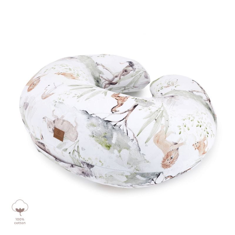 Poduszka do karmienia Makaszka wykonana jest obustronnie z najwyższej jakości dzianiny bawełnianej, która nie spiera się i nie traci swoich właściwości nawet po wielokrotnym praniu. Poszewka zapinana na bezpieczny suwak jest łatwa do zdjęcia z poduchy i wyprania. W środku bawełniany rogal wypełniony antyalergicznym puchem silikonowym zapewniającym miękkość, a także sprężystość. Wewnętrzna część zapinana jest na niewielki suwaczek dający możliwość regulacji ilości wypełnienia. Dzięki temu poducha idealnie dopasowuje się kształtem i rozmiarem do maluszka i osoby karmiącej.
