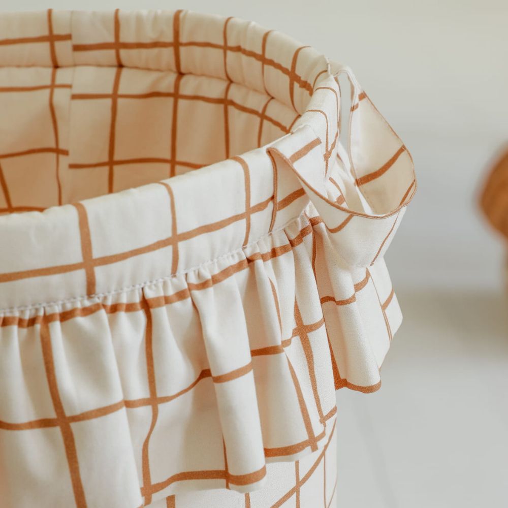 Wprowadź do pokoju swojego dziecka ład i ponadczasowy styl. Kosz na zabawki Camel Check to połączenie minimalistycznego designu z nutą retro, które idealnie wpisuje się w nowoczesne wnętrza. Klasyczny motyw kratki w ciepłym, karmelowym odcieniu sprawia, że ten praktyczny organizer staje się piękną dekoracją, dodającą pomieszczeniu przytulności i szlachetnego charakteru.