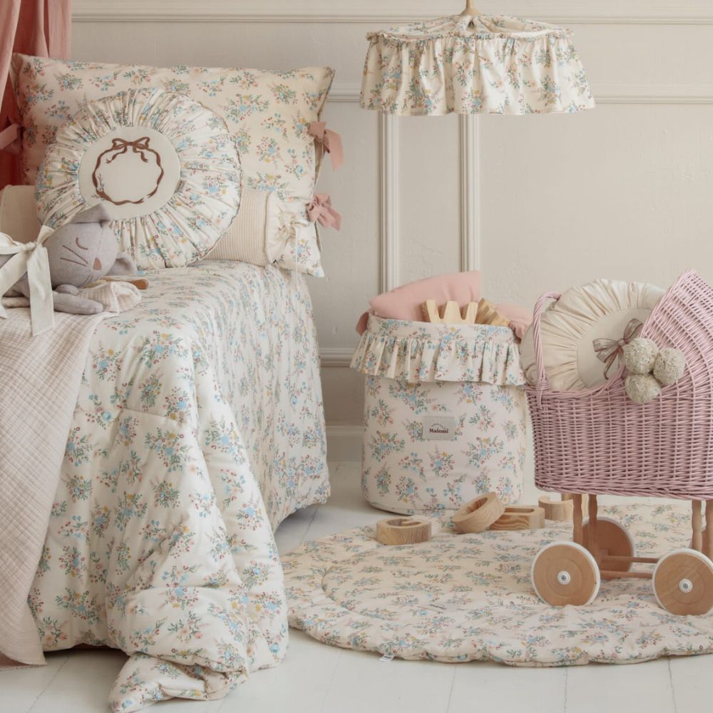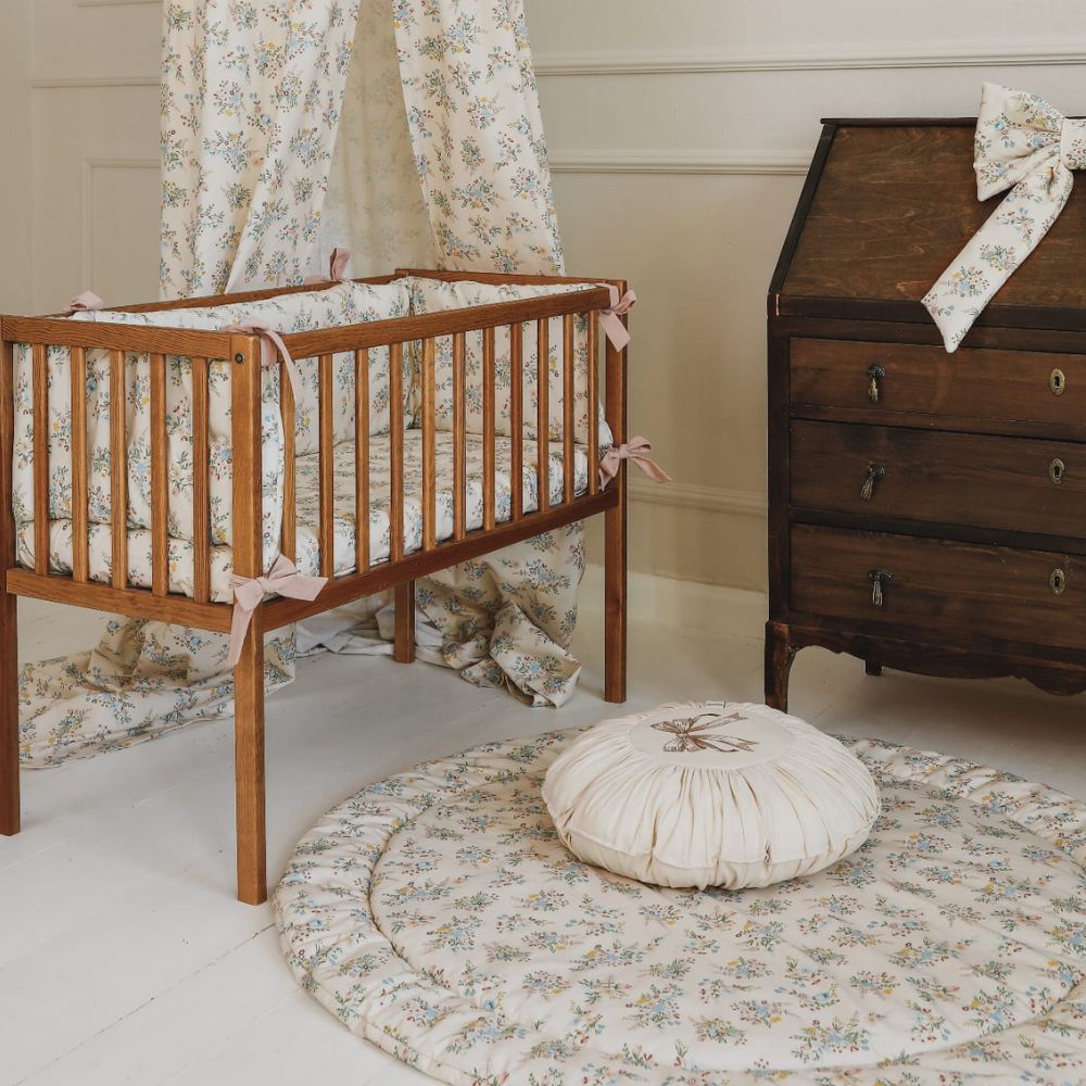 - autorski wzór Blooming Meadow – unikalny motyw polnych kwiatów wprowadza do wnętrza spokój i świeżość natury, stymulując wzrok maluszka w subtelny sposób