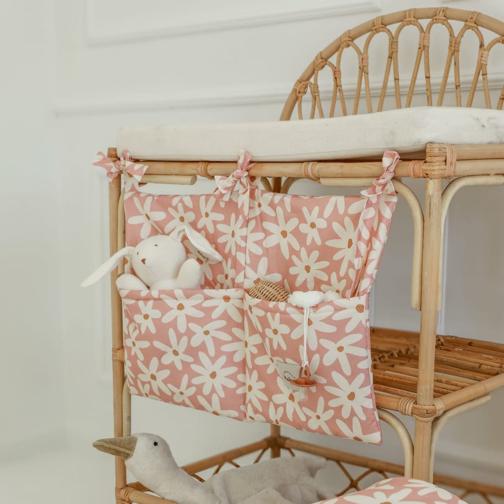 Bawełniany organizer do łóżeczka w stokrotki – funkcjonalność i piękno w jednym