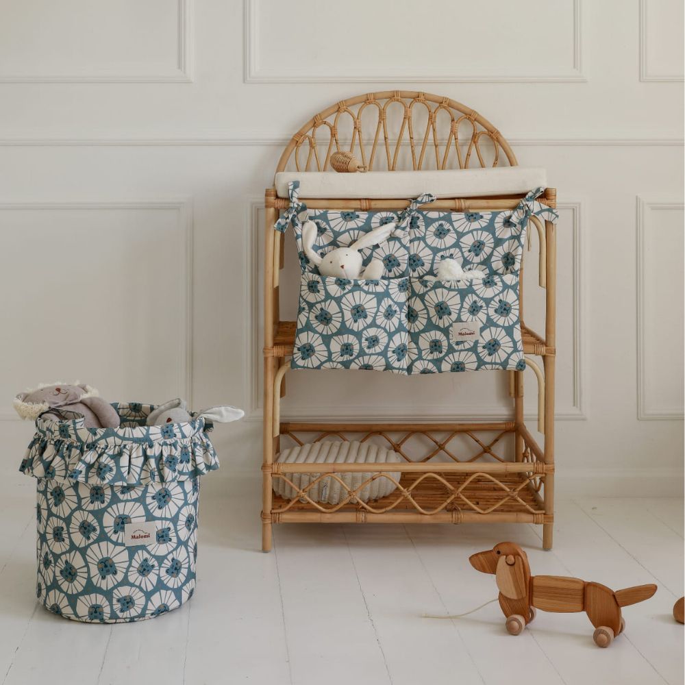 Autorski wzór tkaniny sprawia, że organizer staje się integralną częścią aranżacji pokoju – doskonale komponuje się z innymi tekstyliami i tworzy spójną, przytulną przestrzeń.