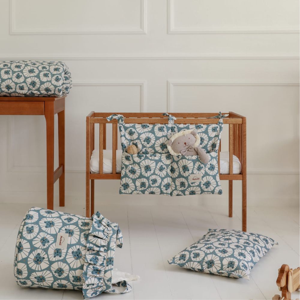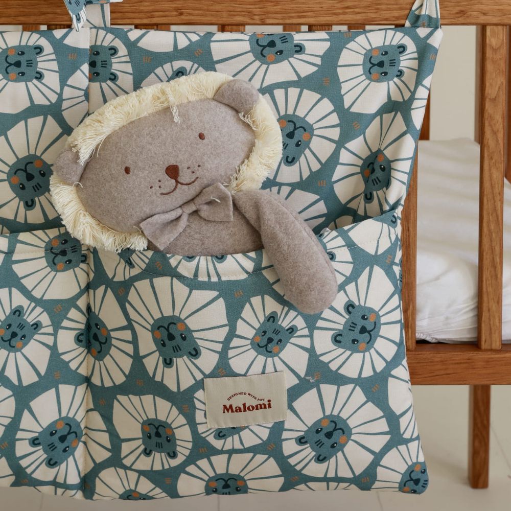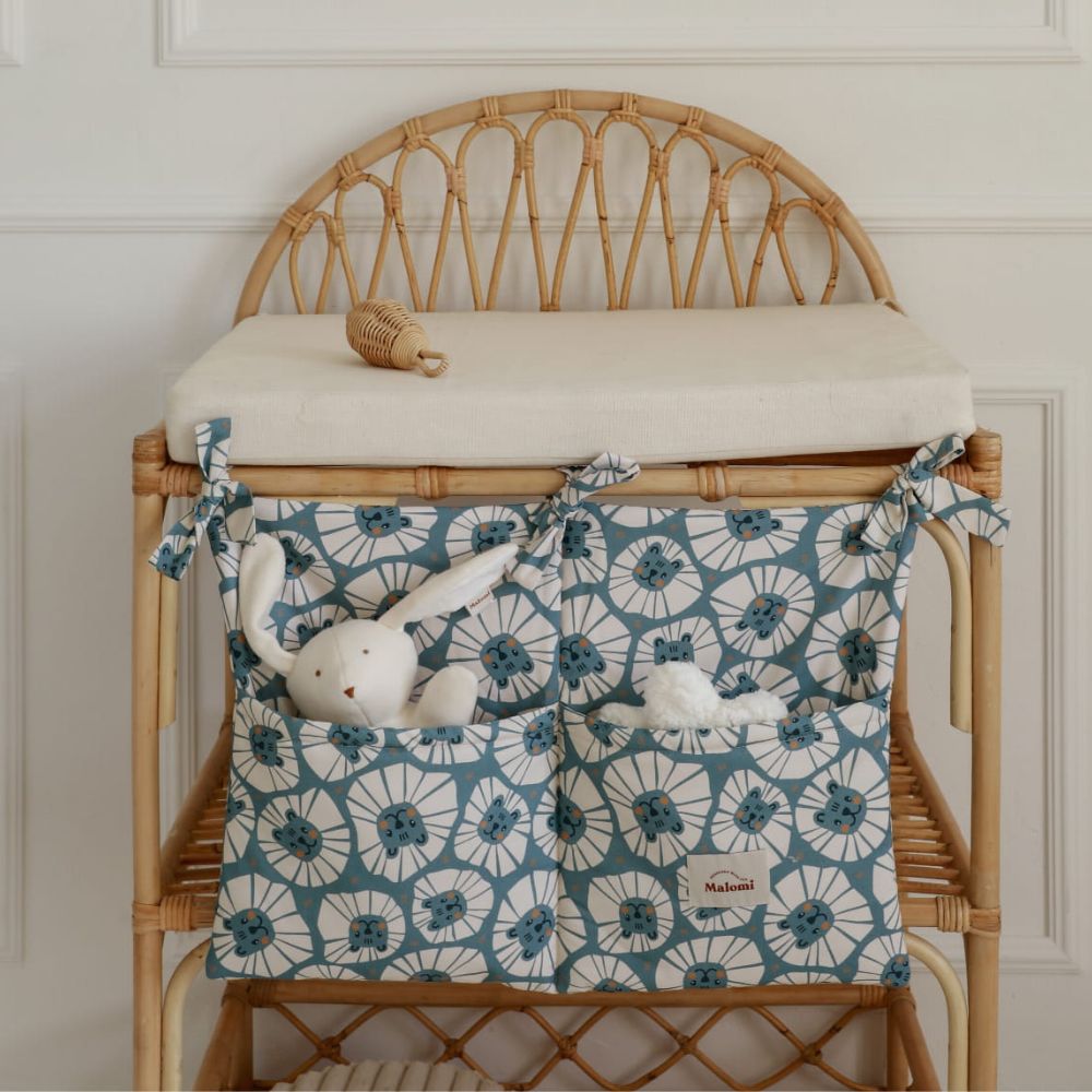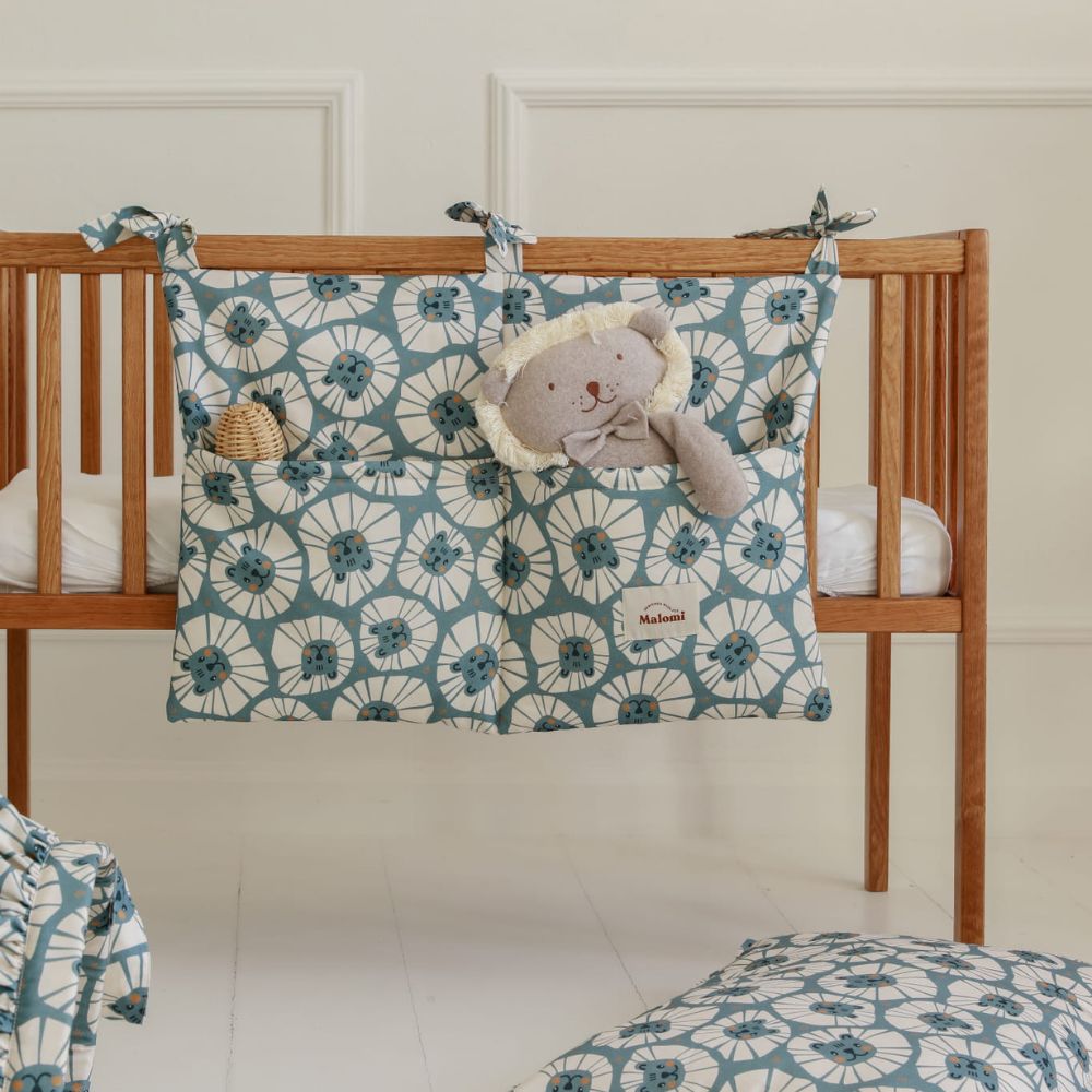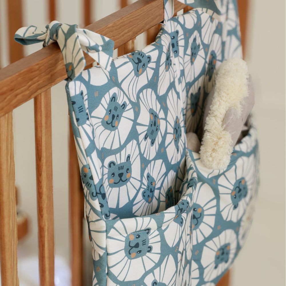 Bawełniany organizer do łóżeczka Denim Lions – funkcjonalność i piękno w jednym