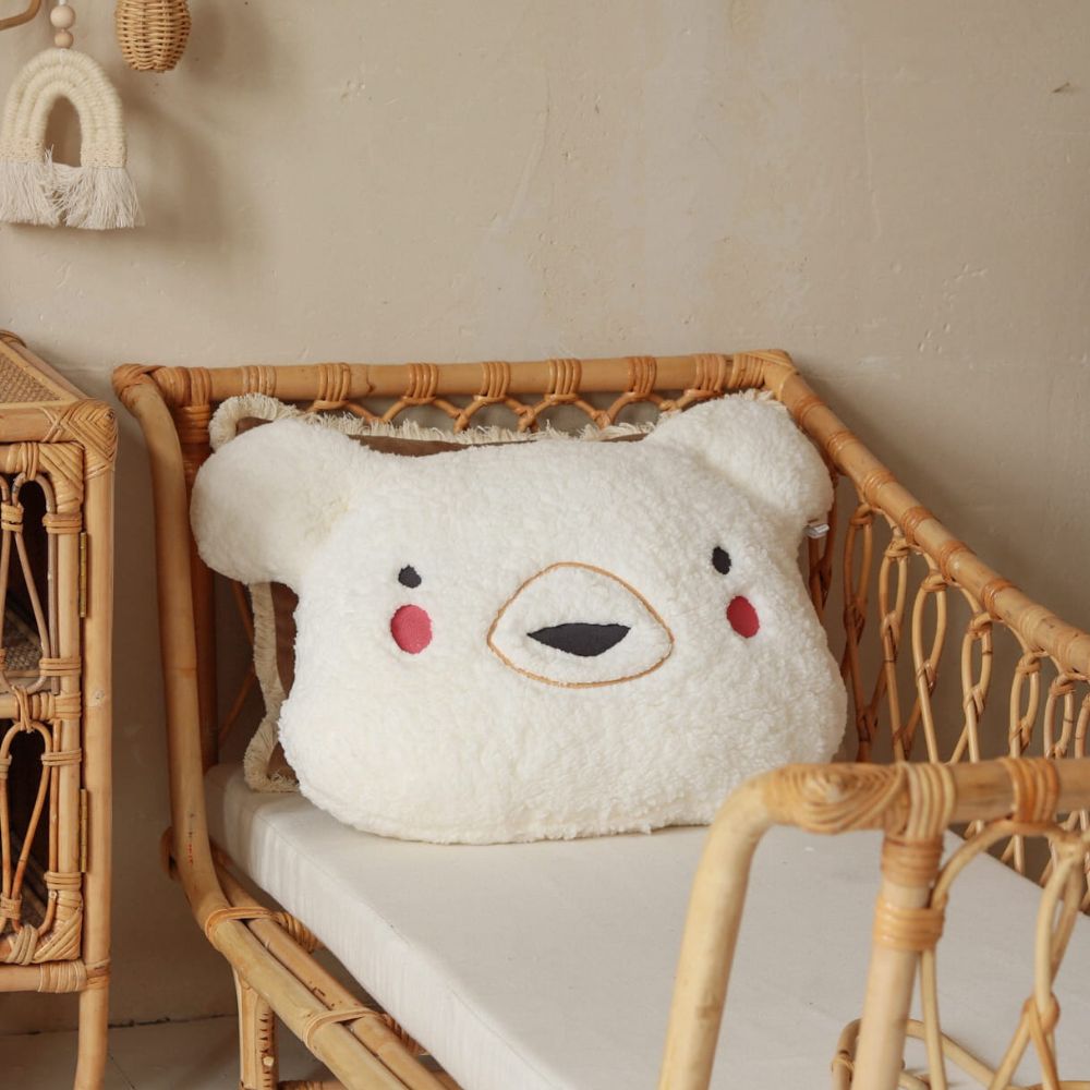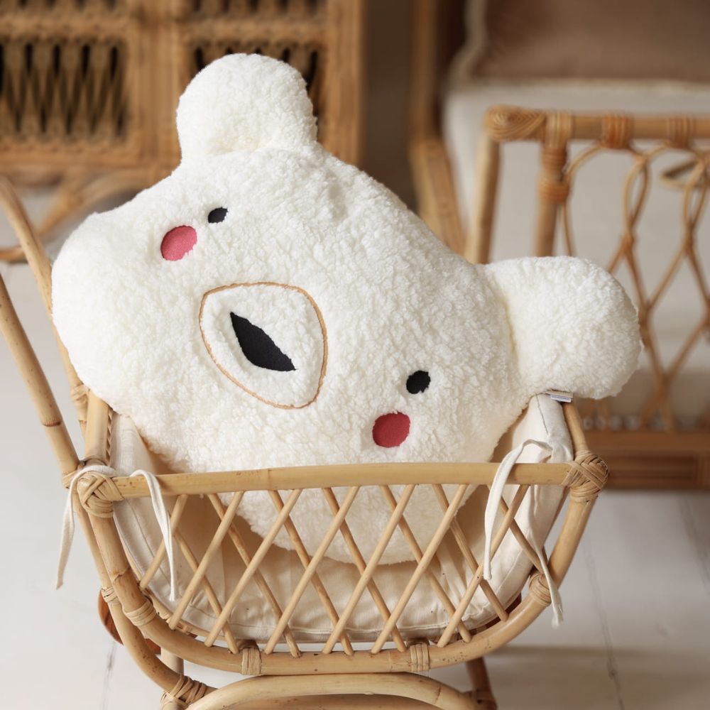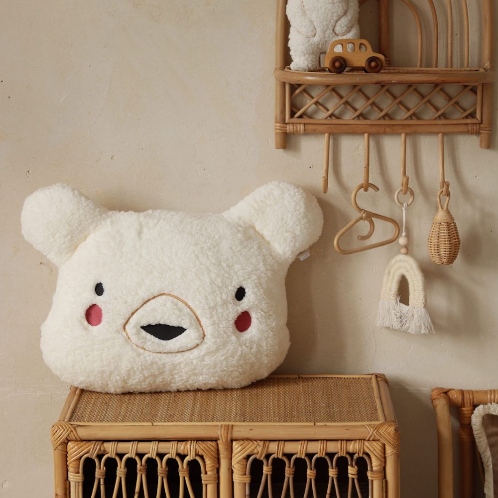 Wybierz miękkość, której nie da się oprzeć. Zamów poduszkę Miś Ecru w Tuliroom i stwórz dziecku kącik pełen czułości.