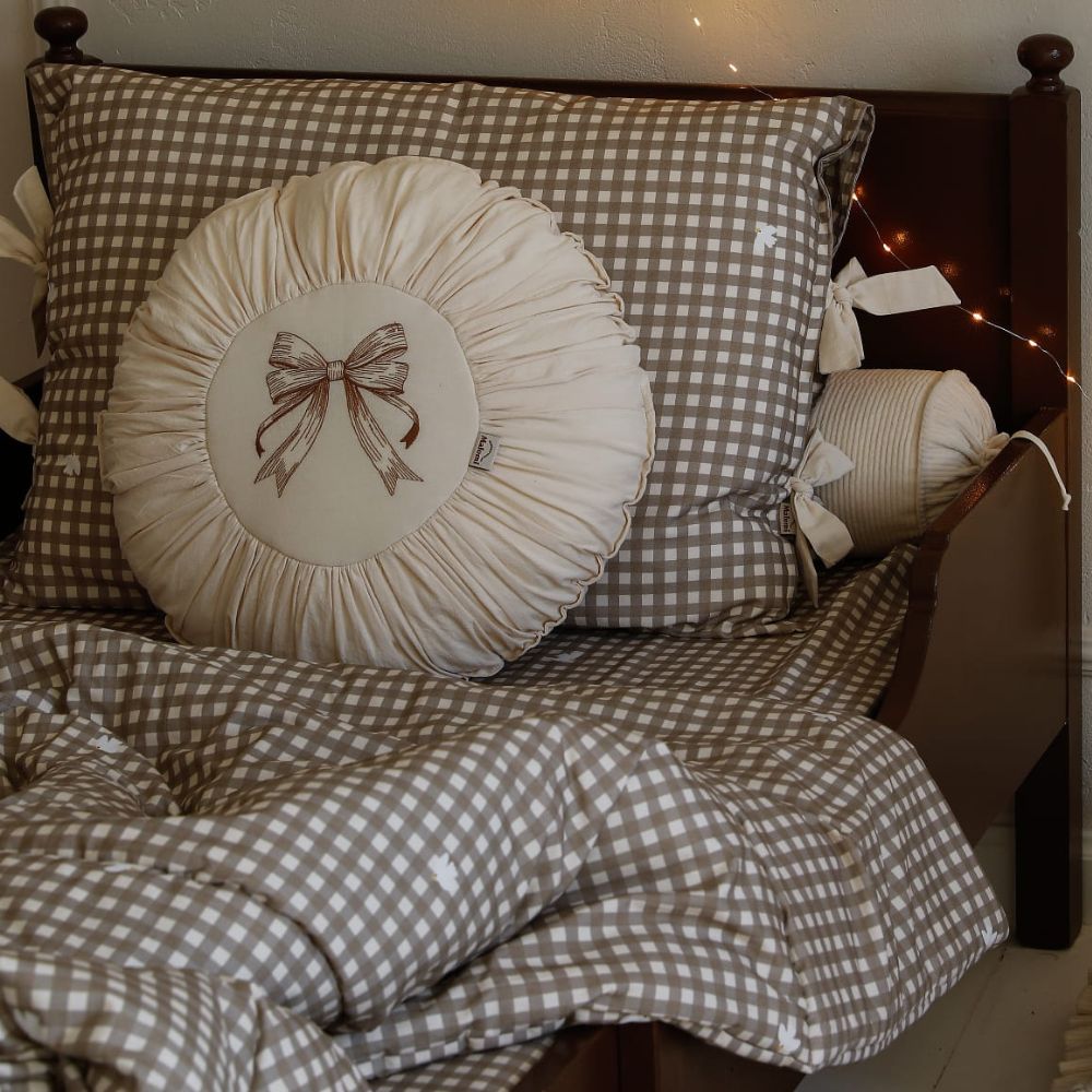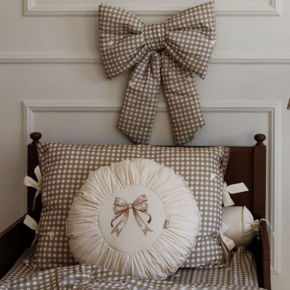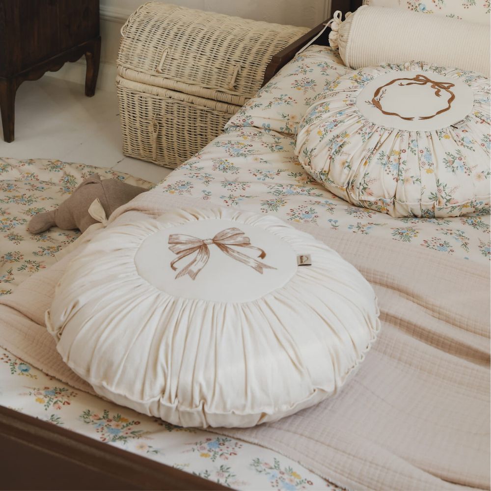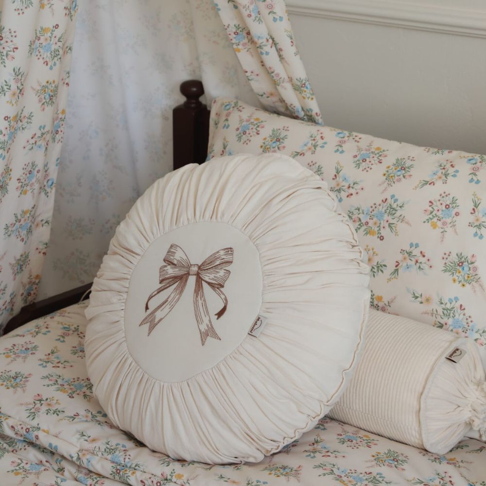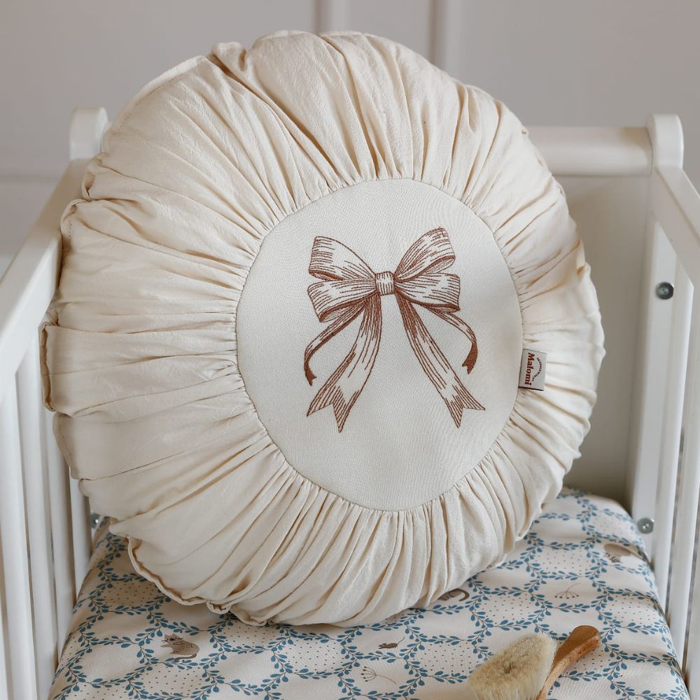 Wprowadź do wnętrza swojego dziecka harmonię i spokój dzięki okrągłej poduszce dekoracyjnej Malomi Kids w odcieniu Natural. Haft z kokardką nadaje jej luksusowego charakteru, tworząc unikatowy dodatek, który doskonale odnajdzie się w każdej aranżacji premium.