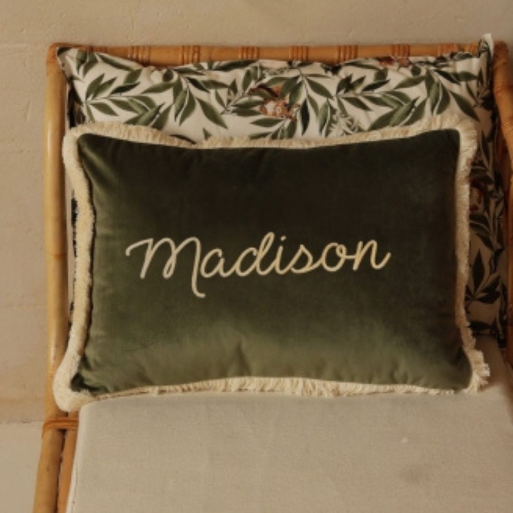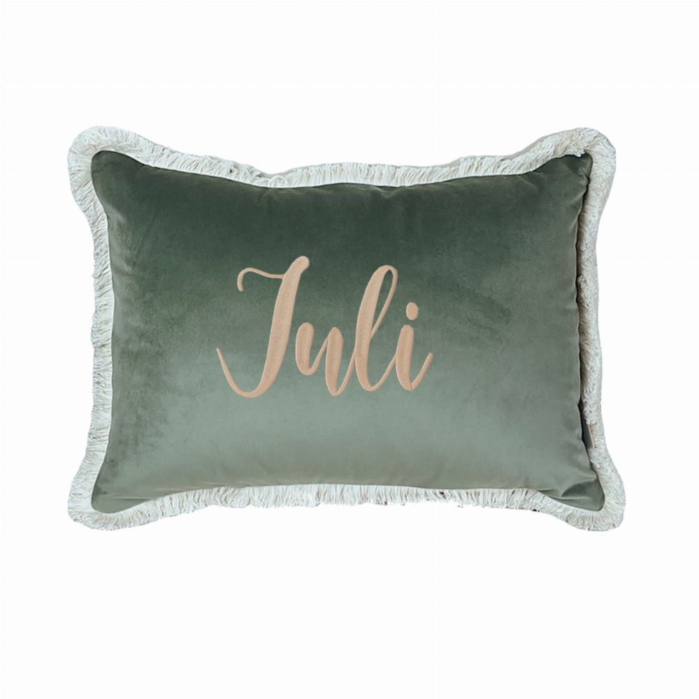 Poduszka Delux z frędzlami Forest Green – głęboka zieleń i luksusowy detal w pokoju Twojego dziecka