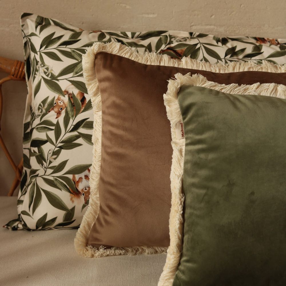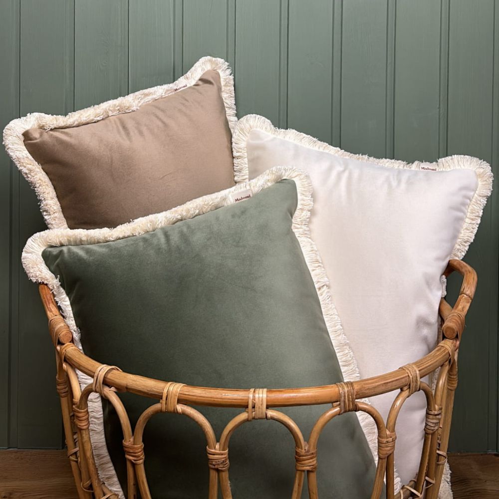 Szlachetny velvet - ozdobna poduszka z frędzlami