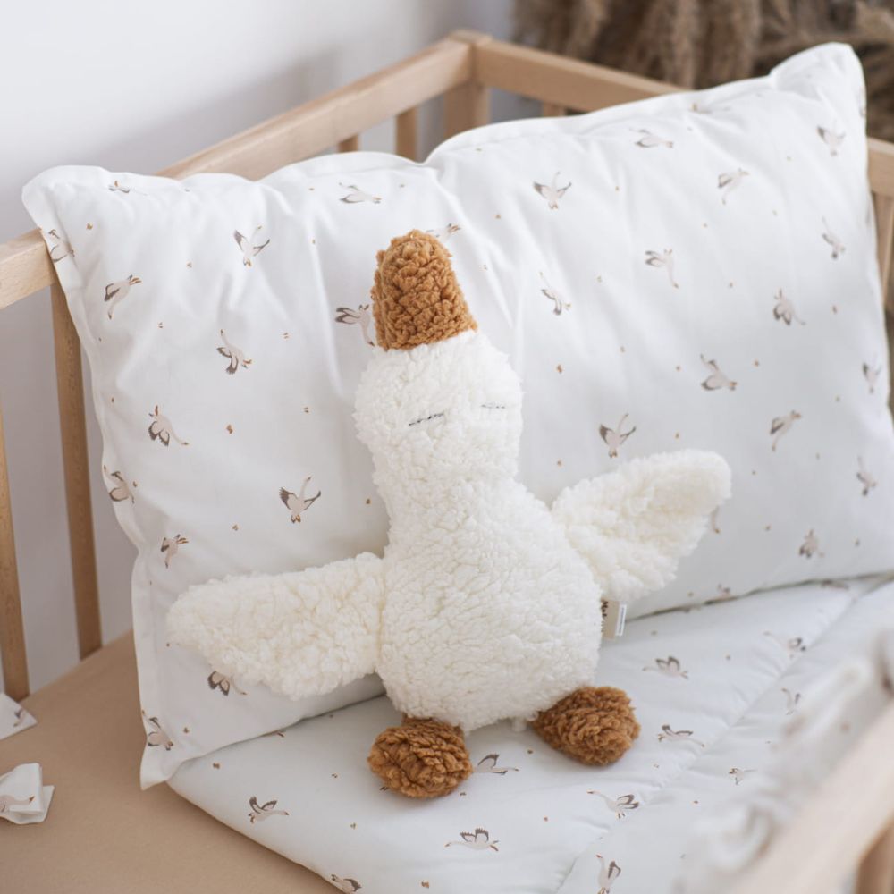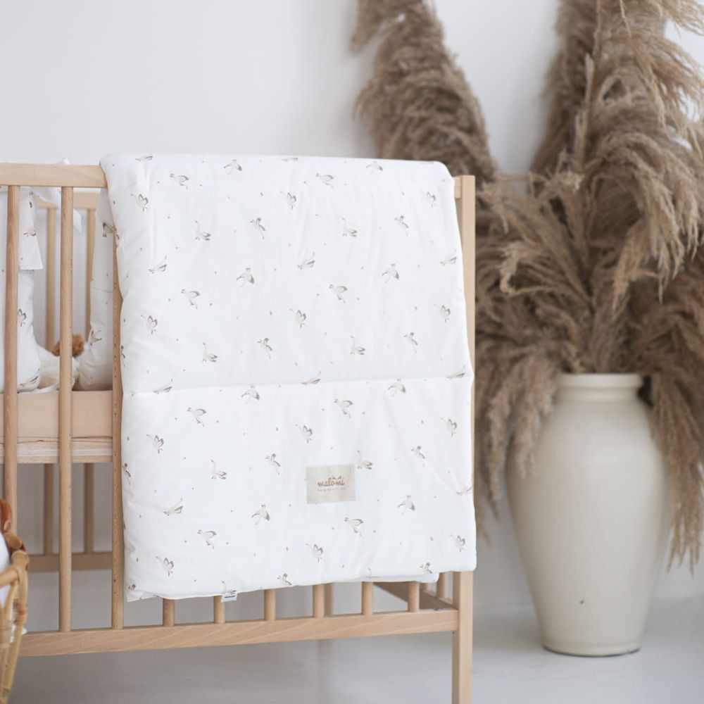 Motyw gąsek stał się symbolem przytulności i stylu boho w dziecięcych wnętrzach. Delikatna grafika na neutralnym tle sprawia, że pościel prezentuje się niezwykle lekko i stylowo. W Tuliroom wiemy, że diabeł tkwi w szczegółach – wzór ten doskonale komponuje się z drewnianymi łóżeczkami, lnianymi dodatkami i naturalną kolorystyką ziemi. To uniwersalny wybór, który pasuje zarówno do pokoju chłopca, jak i dziewczynki, nadając przestrzeni harmonijny charakter.