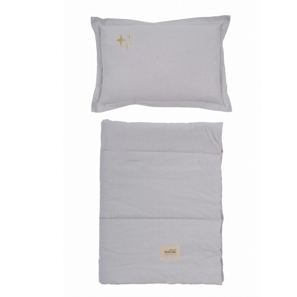 MALOMI KIDS - POŚCIEL WASHED COTTON Z WYPEŁNIENIEM STARS GREY