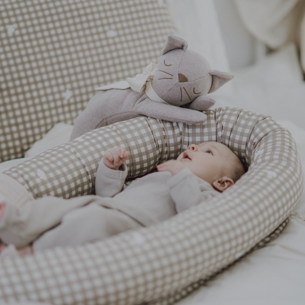 Poznaj wyjątkową przytulankę w kształcie śpiącego kotka, która od pierwszej chwili skradnie serce Twojego maluszka. Delikatna, spokojna forma z zamkniętymi oczkami wprowadza atmosferę wyciszenia i bezpieczeństwa – idealną do zasypiania i codziennego tulenia.