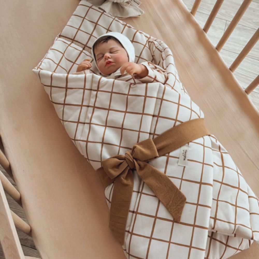 Rożek niemowlęcy i pierwsza kołderka – elegancja w kolekcji Camel Check
