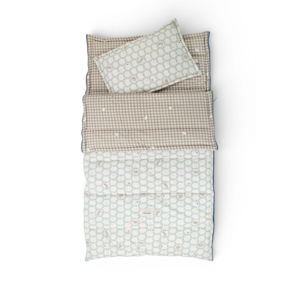 Zestaw do spania Malomi Kids: śpiworek z poduszką – Blue Cottage