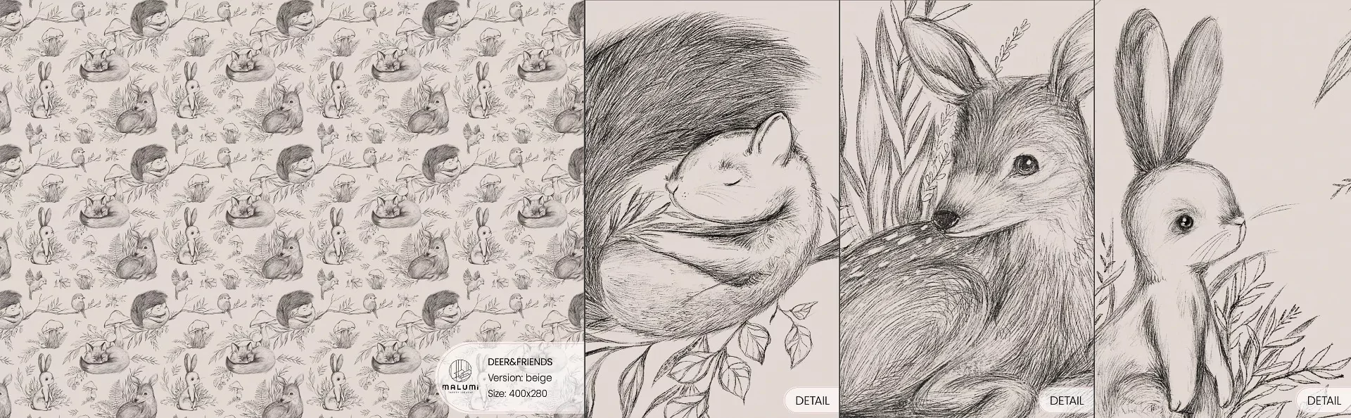MALUMI DEER&FRIENDS BEIGE - PRÓBKA TAPETY