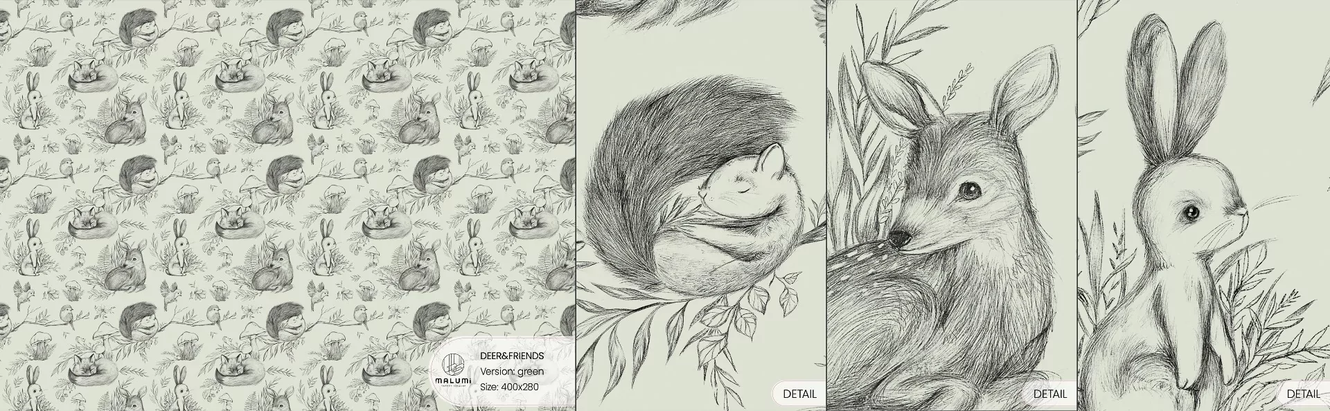 MALUMI DEER&FRIENDS GREEN- PRÓBKA TAPETY