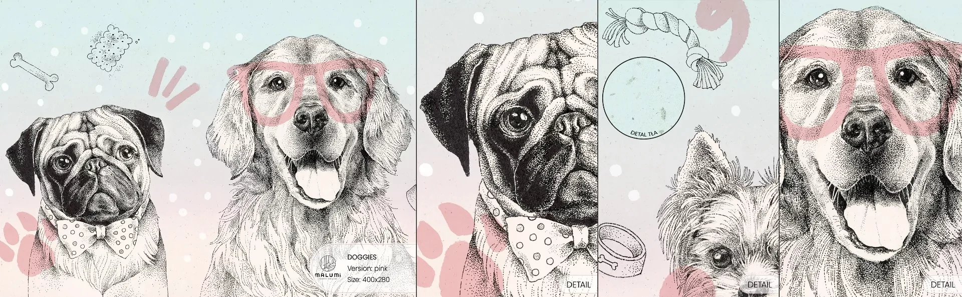 MALUMI DOGGIES PINK - PRÓBKA TAPETY