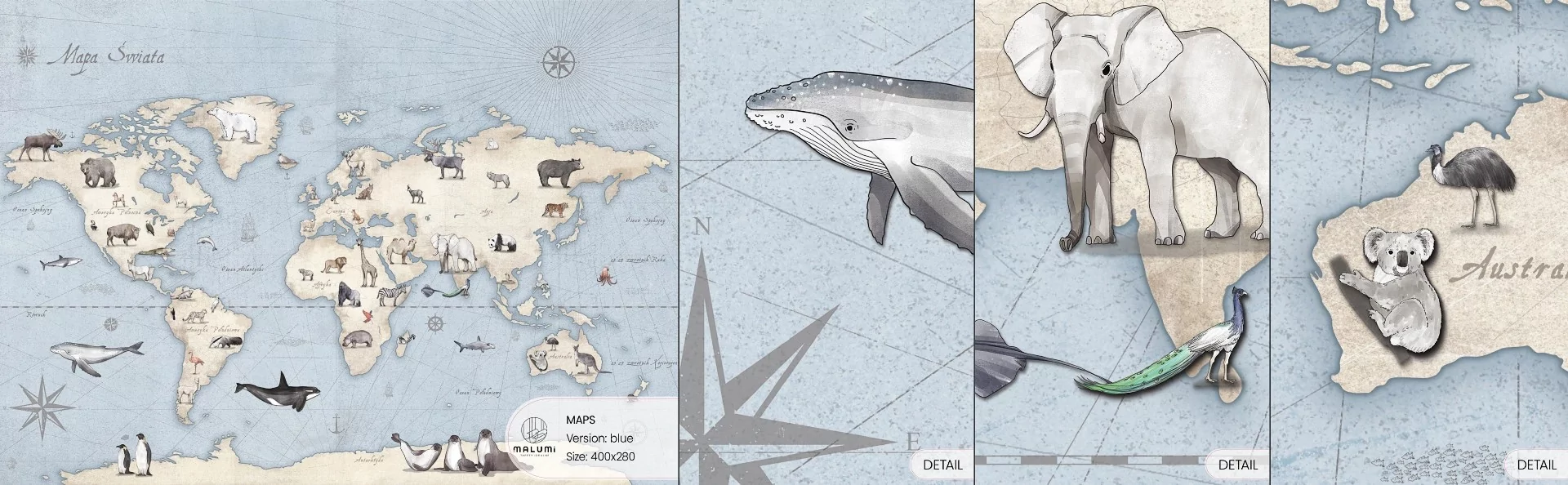 MALUMI MAPS BLUE - PRÓBKA TAPETY