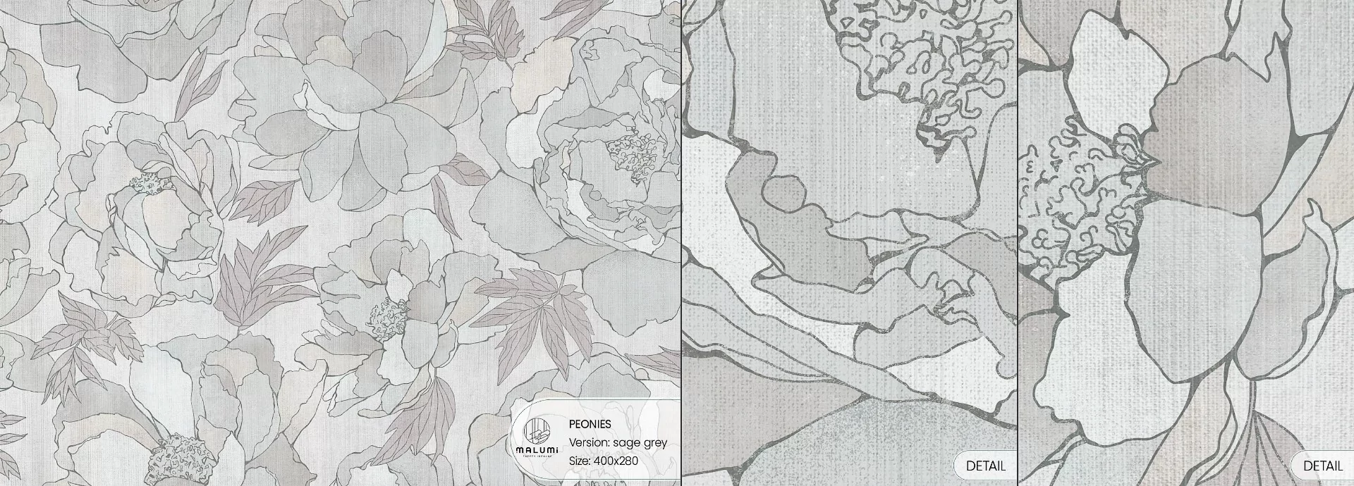 MALUMI PEONIES SAGE GREY - PRÓBKA TAPETY