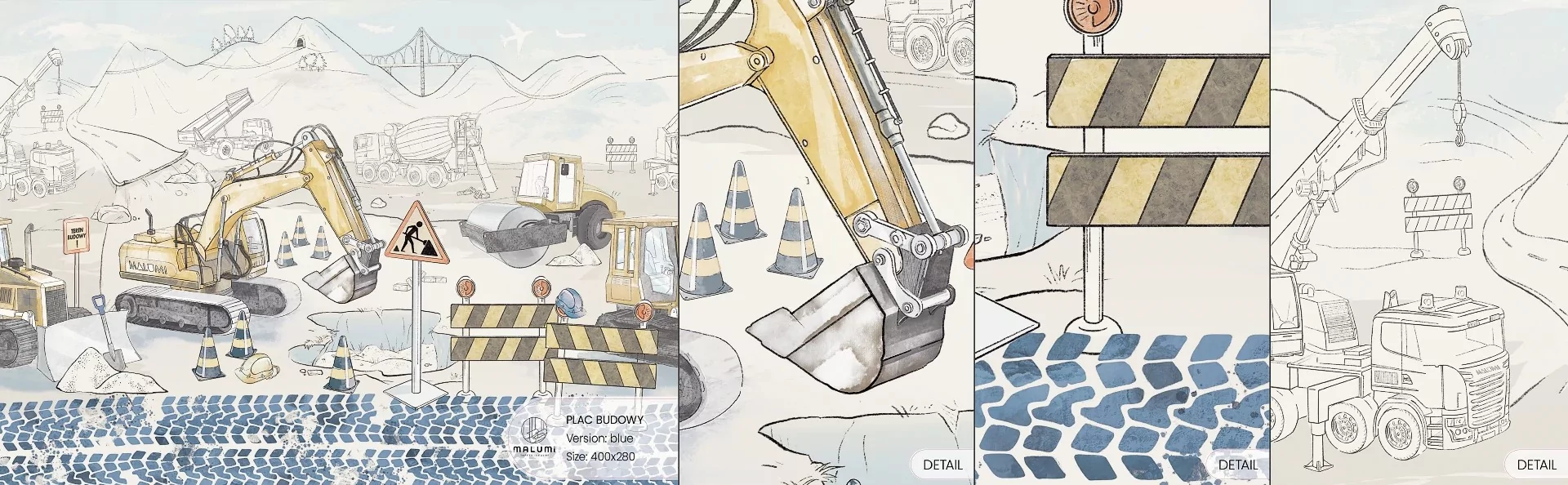 MALUMI PLAC BUDOWY MURAL BLUE - PRÓBKA TAPETY