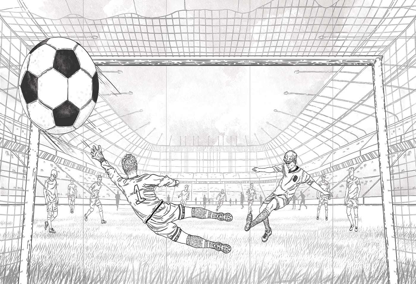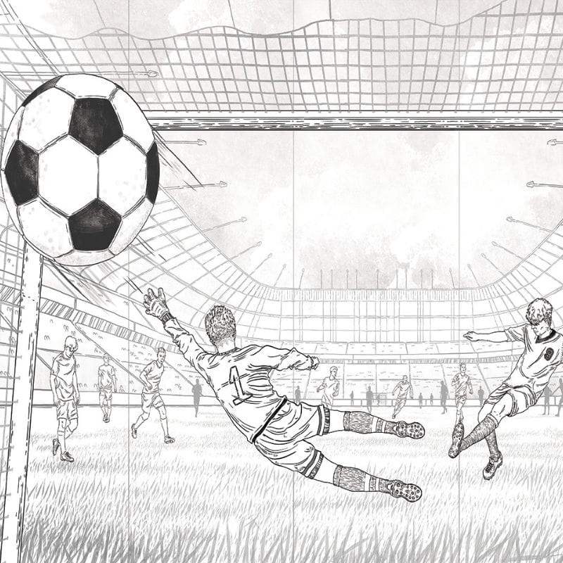 Wysokiej jakości tapeta na ścianę do pokoju chłopca z unikatowym wzorem, która idealnie sprawdzi się w pokoju każdego piłkarza. Jeśli Twoje dziecko interesuje się piłką nożną, ta tapeta będzie piękną dekoracją ściany i sprawi, że przebywanie w pokoju będzie wielką przyjemnością. Tapeta z piłką nożną i bramką to bardzo ciekawy wzór przedstawiający dynamiczną scenkę strzelania gola na wielkim stadionie piłkarskim.
