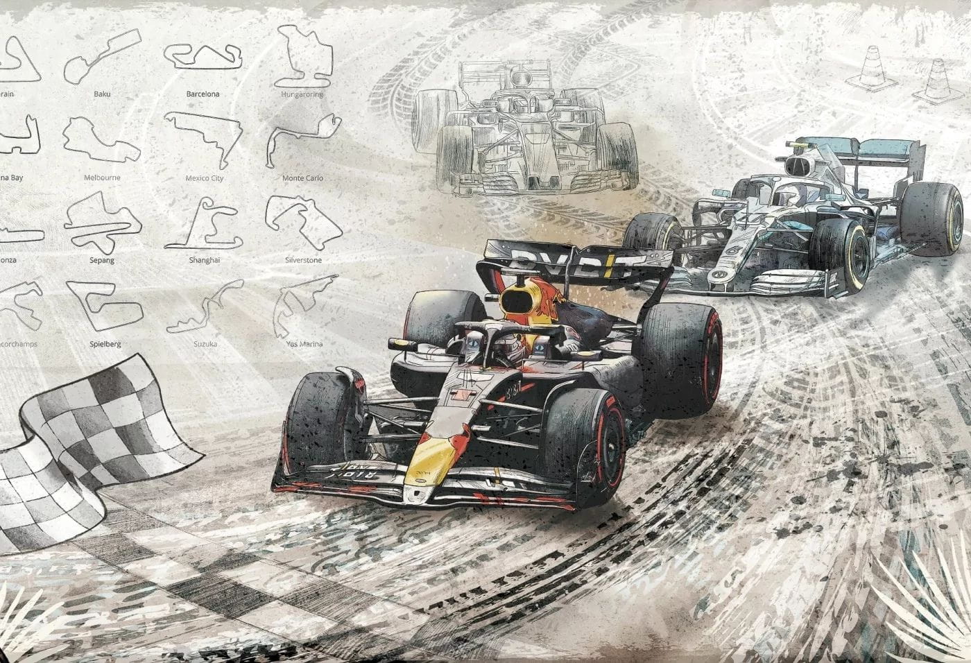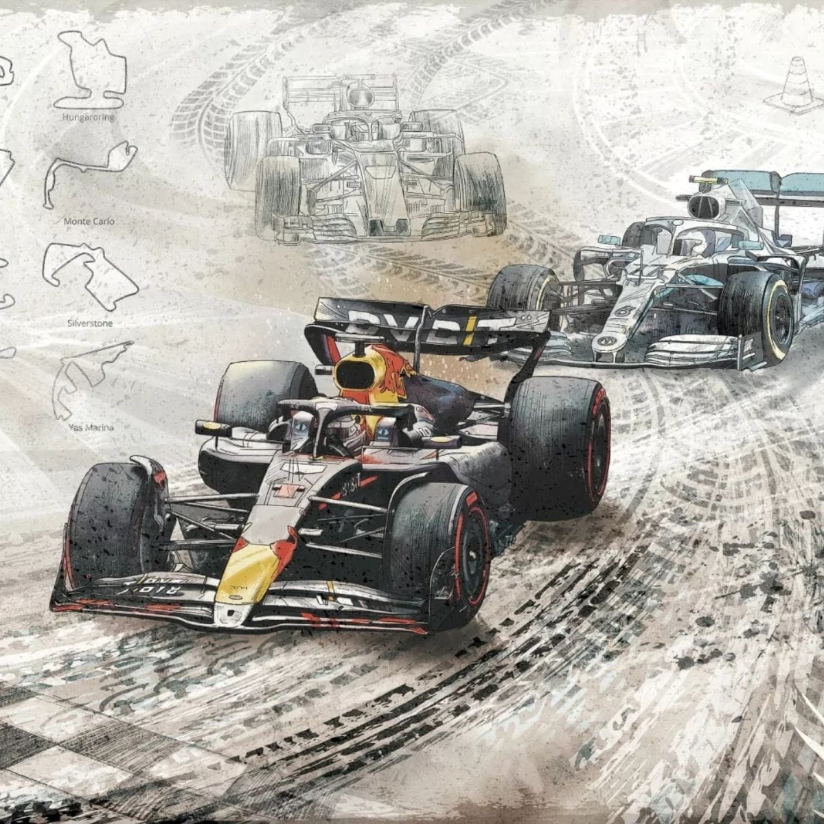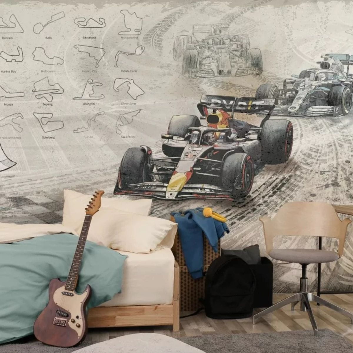 Tapeta z motywem wyścigówek Formuła 1 - idealna tapeta do pokoju chłopca