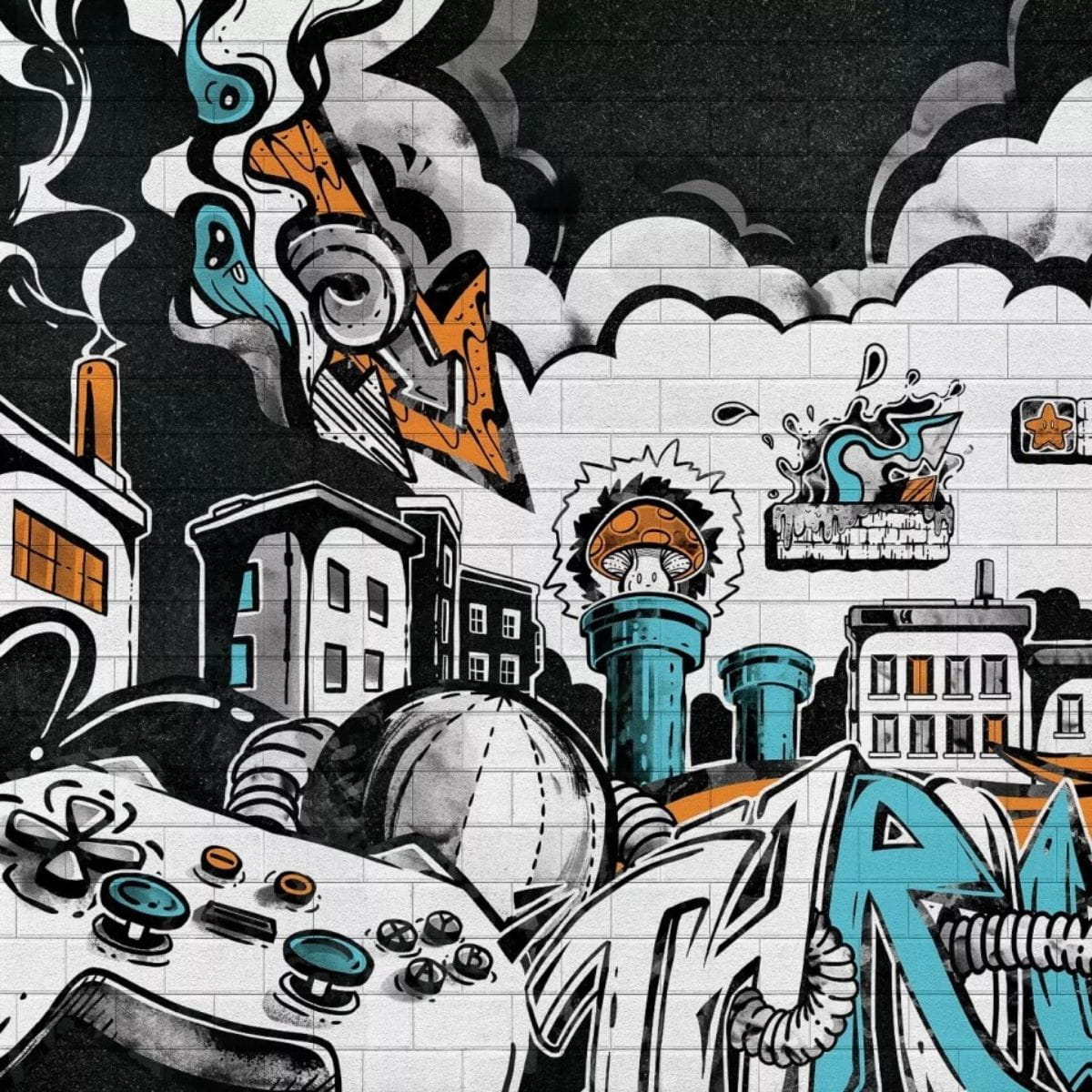 MALUMI - TAPETA DLA CHŁOPCA GRAFFITI ORANGE