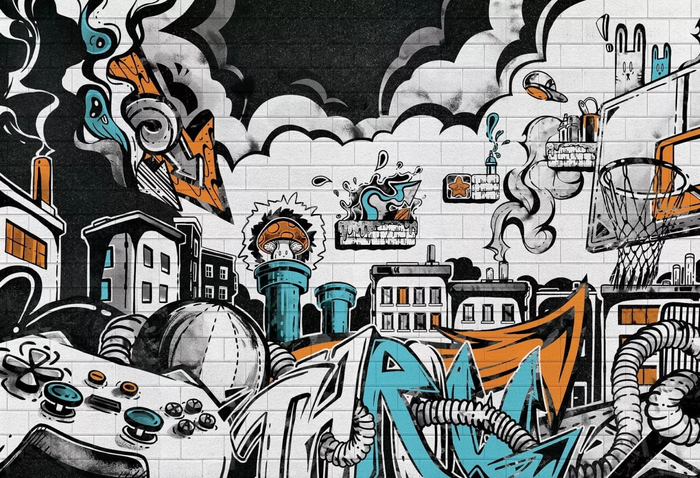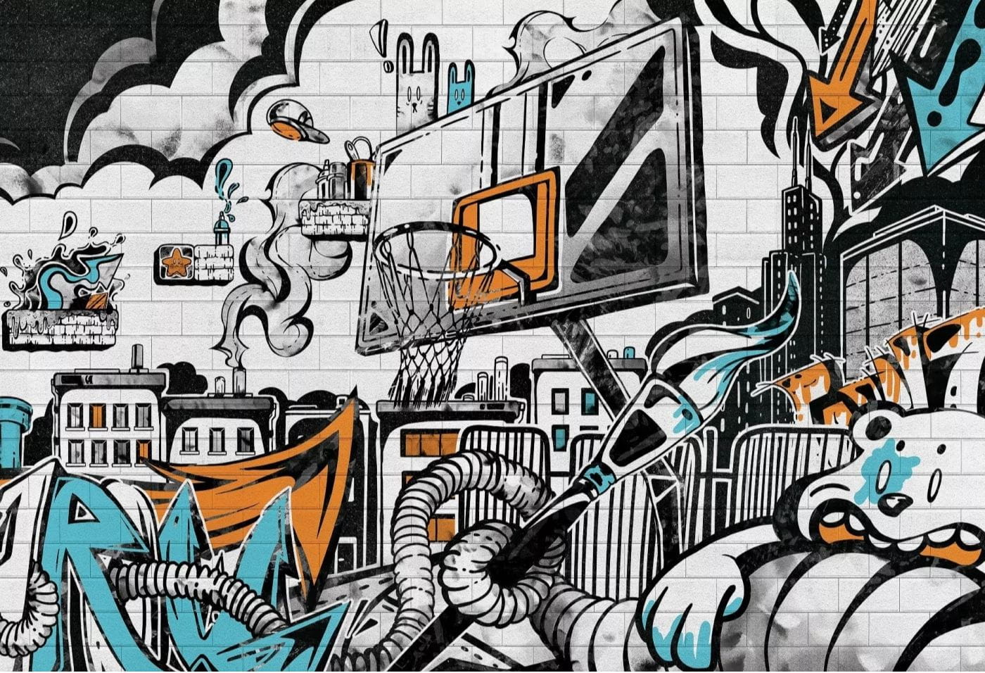Ta tapeta to strzał w dziesiątkę dla chłopaka z pasją! Street art, graffiti, basket i klimat miejskiej przygody – wszystko zamknięte w jednym, dynamicznym wzorze. Idealna dla młodych buntowników, którzy szukają własnego stylu i nie boją się wyróżniać. Oryginalna grafika inspirowana doodle artem przenosi do świata, gdzie rzeczywistość miesza się z wyobraźnią – są tu i wieżowce, i koszykarskie boisko, i pikselowy klimat gier retro. Stonowane szarości z mocnymi akcentami błękitu i oranżu dodają energii, ale nie męczą wzroku.