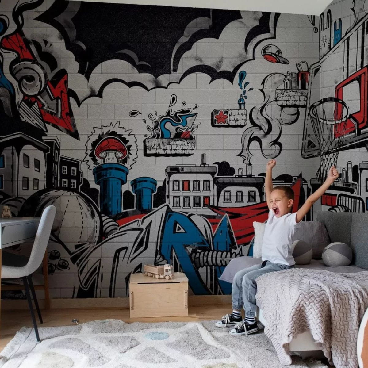 Tapeta młodzieżowa do pokoju chłopca – street art, graffiti, sport i gaming w jednym!