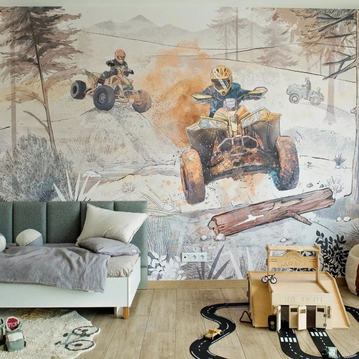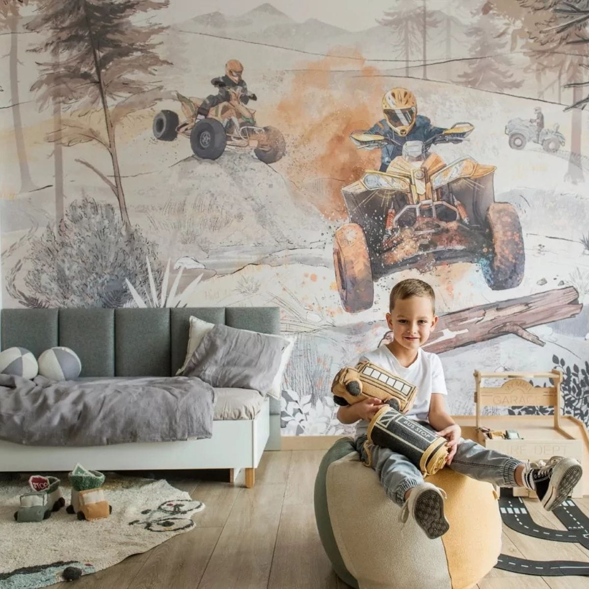 Niezwykła fototapeta z quadami to propozycja dla troszkę starszych chłopców. Idealny wzór dla fanów adrenaliny i motoryzacji.