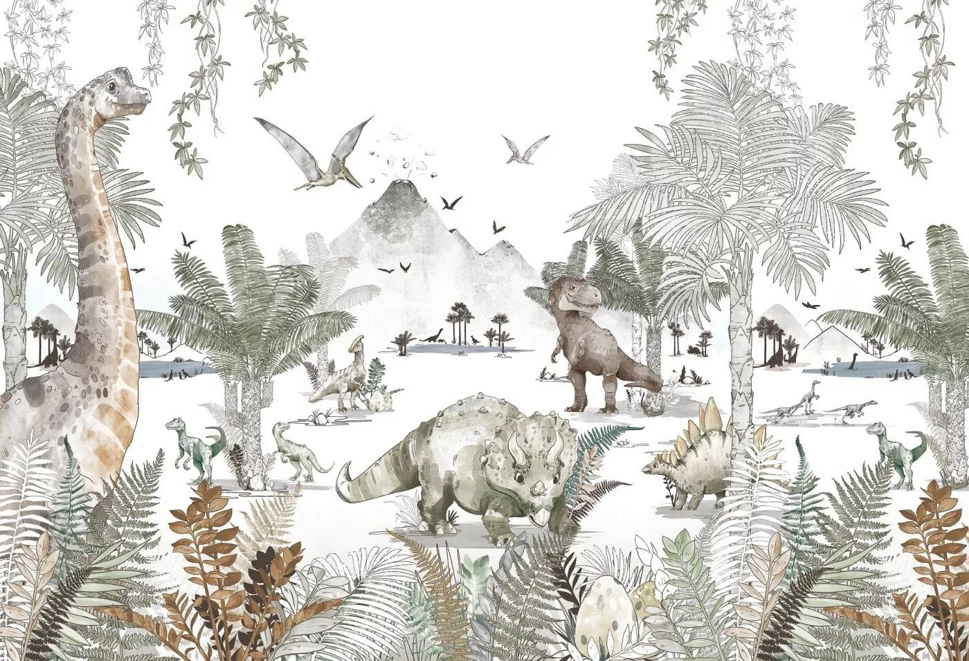 Tapeta z dinozaurami do pokoju dziecięcego. Prawdziwa gratka dla każdego fana dinozaurów.