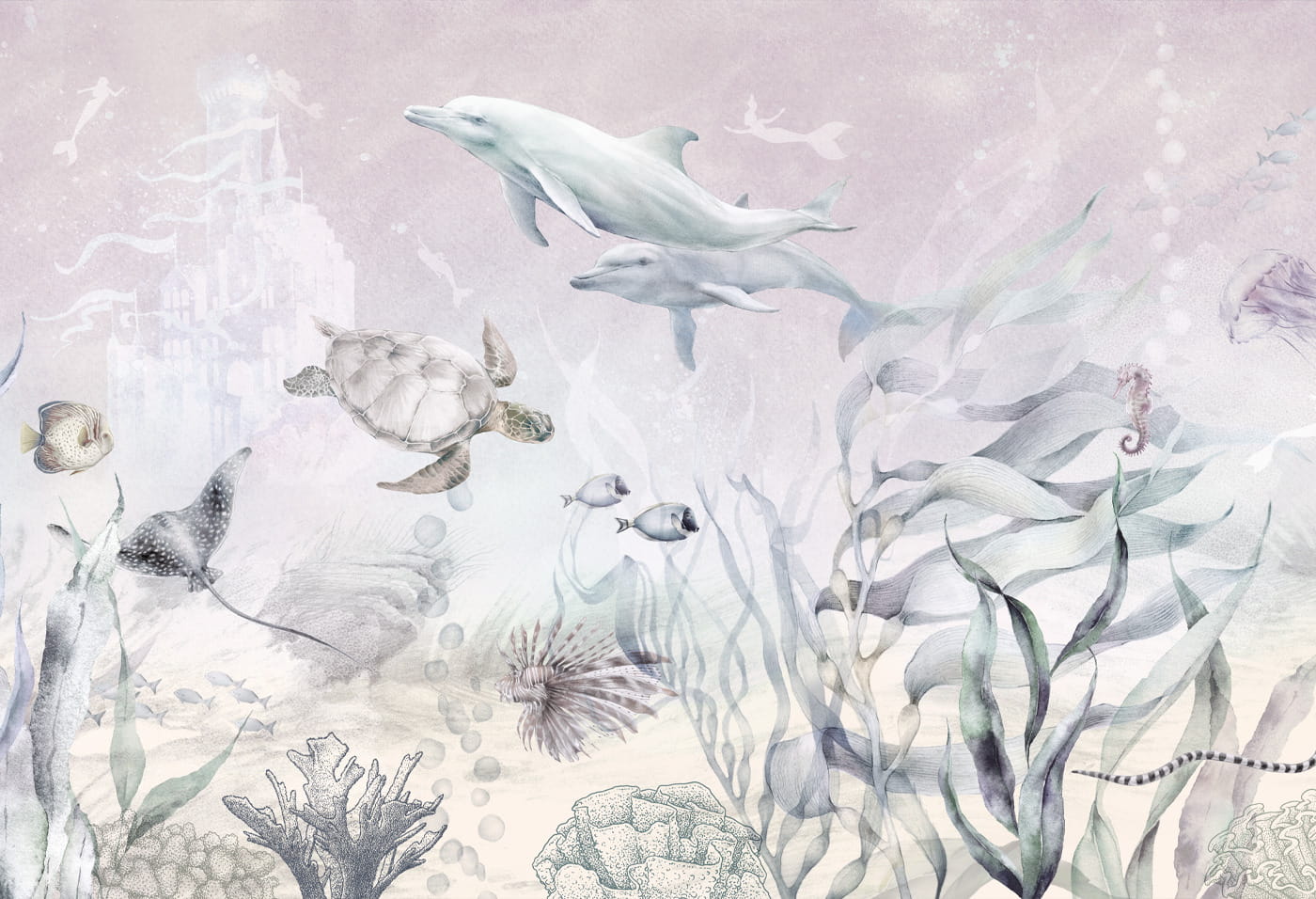 Tapeta Marine Adventure Lila - dla miłośniczek podwodnego świata