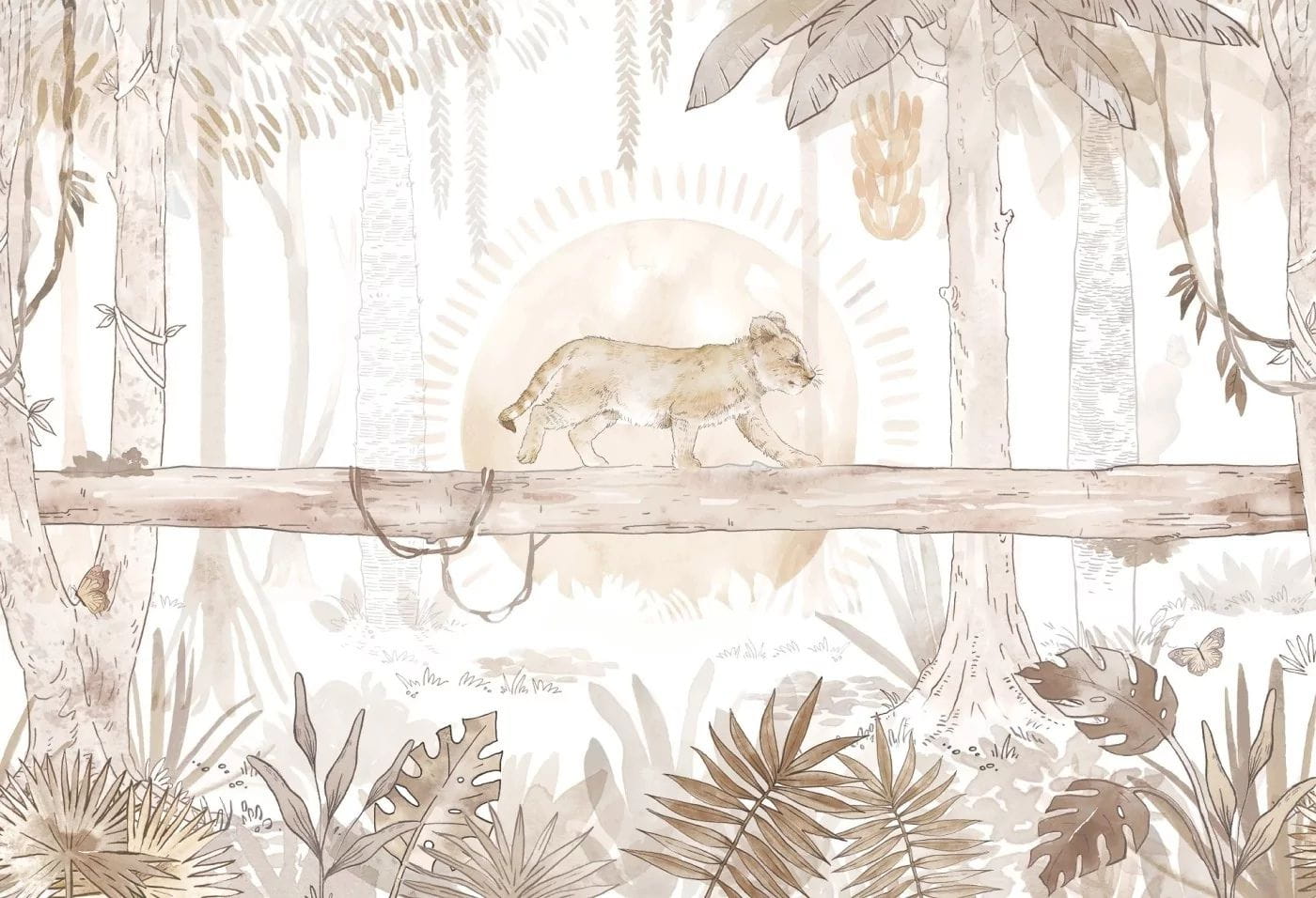 Tapeta safari z lwem do pokoju dziecięcego – przygoda w bajkowym stylu