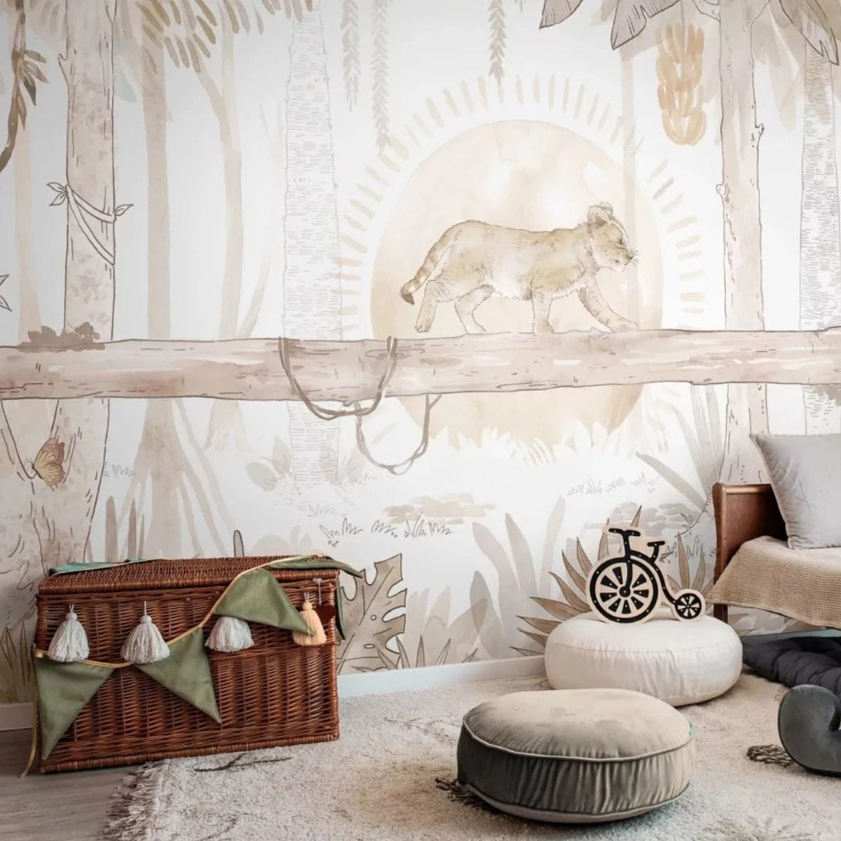 To nie tylko estetyczna ozdoba, ale także inspiracja do kreatywnej zabawy i nauki o dzikich zwierzętach. Tapeta została zaprojektowana z myślą o najmłodszych – ciepła kolorystyka, miękkie linie i przyjazna forma nie powodują przebodźcowania, a jednocześnie ożywiają przestrzeń i tworzą przyjazne miejsce do zabawy i odpoczynku.