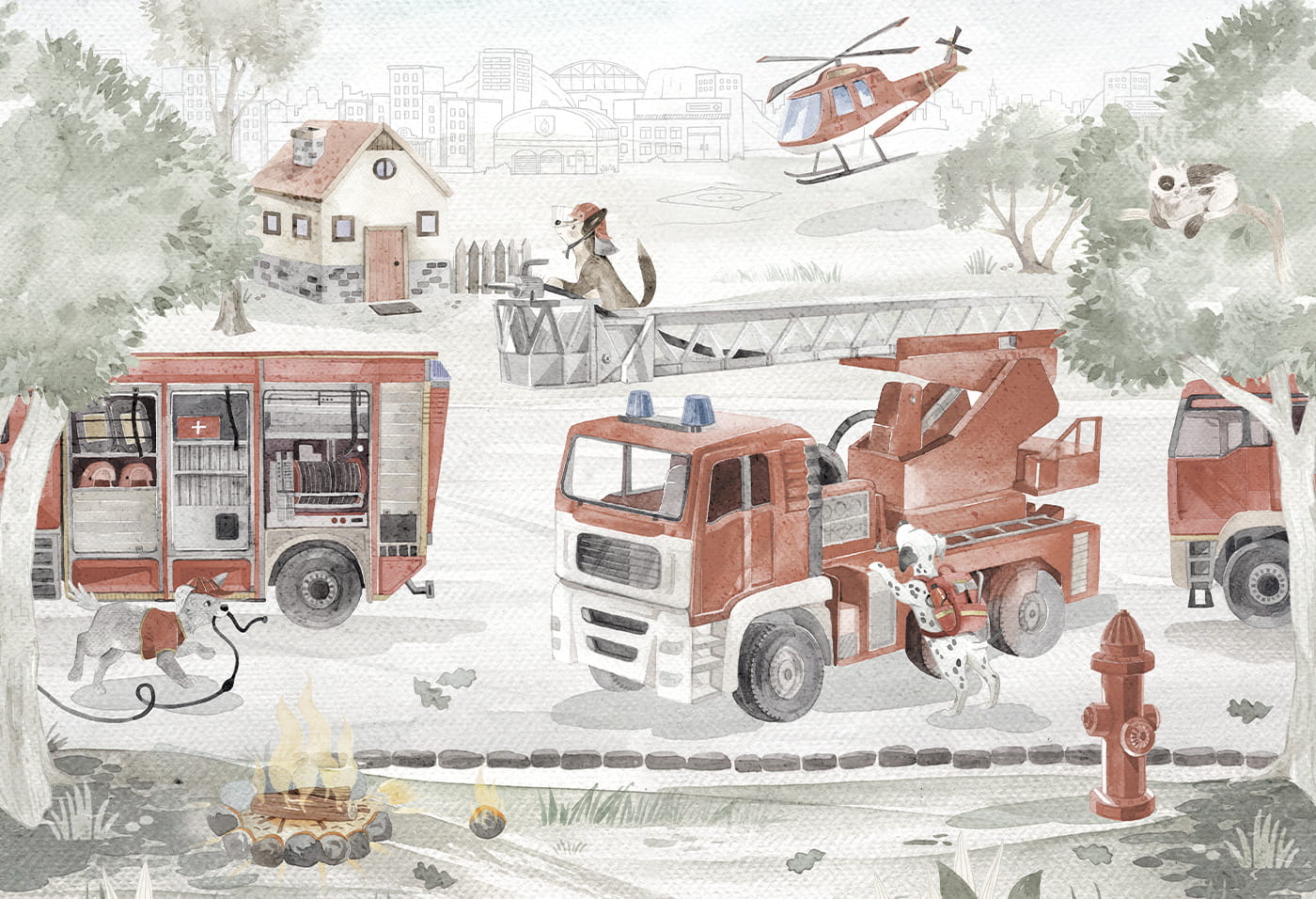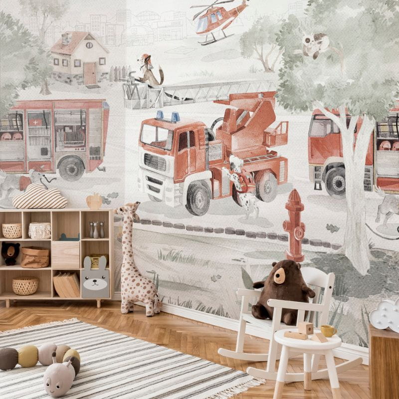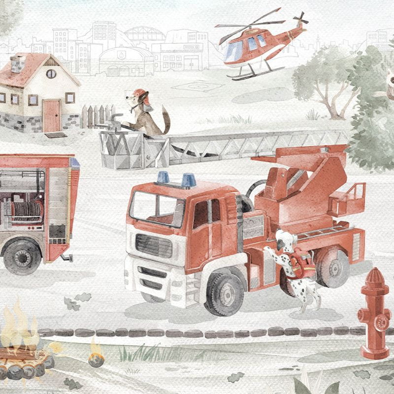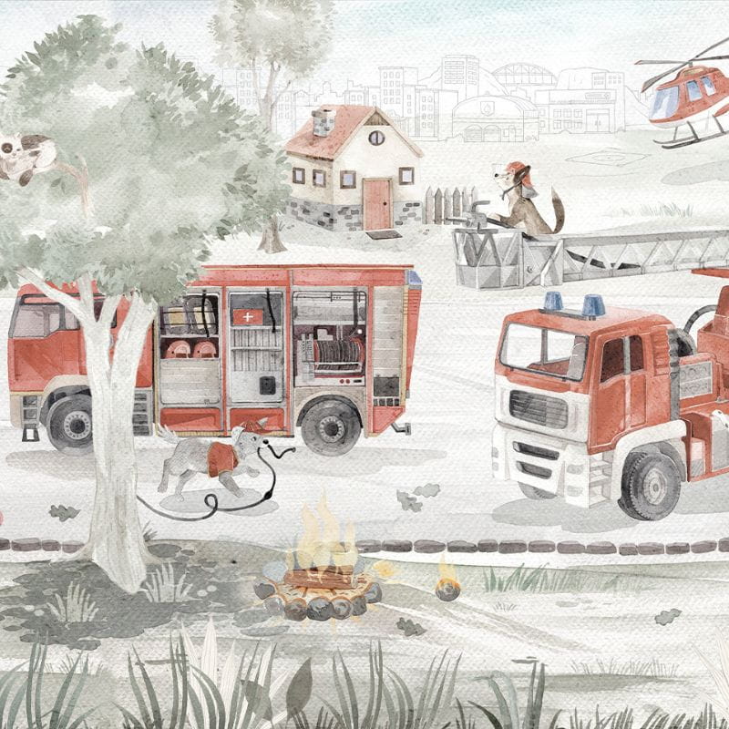 Tapeta ze strażą pożarną i uroczymi pieskami z pewnością będzie idealnym rozwiązaniem dla każdego małego bohatera.