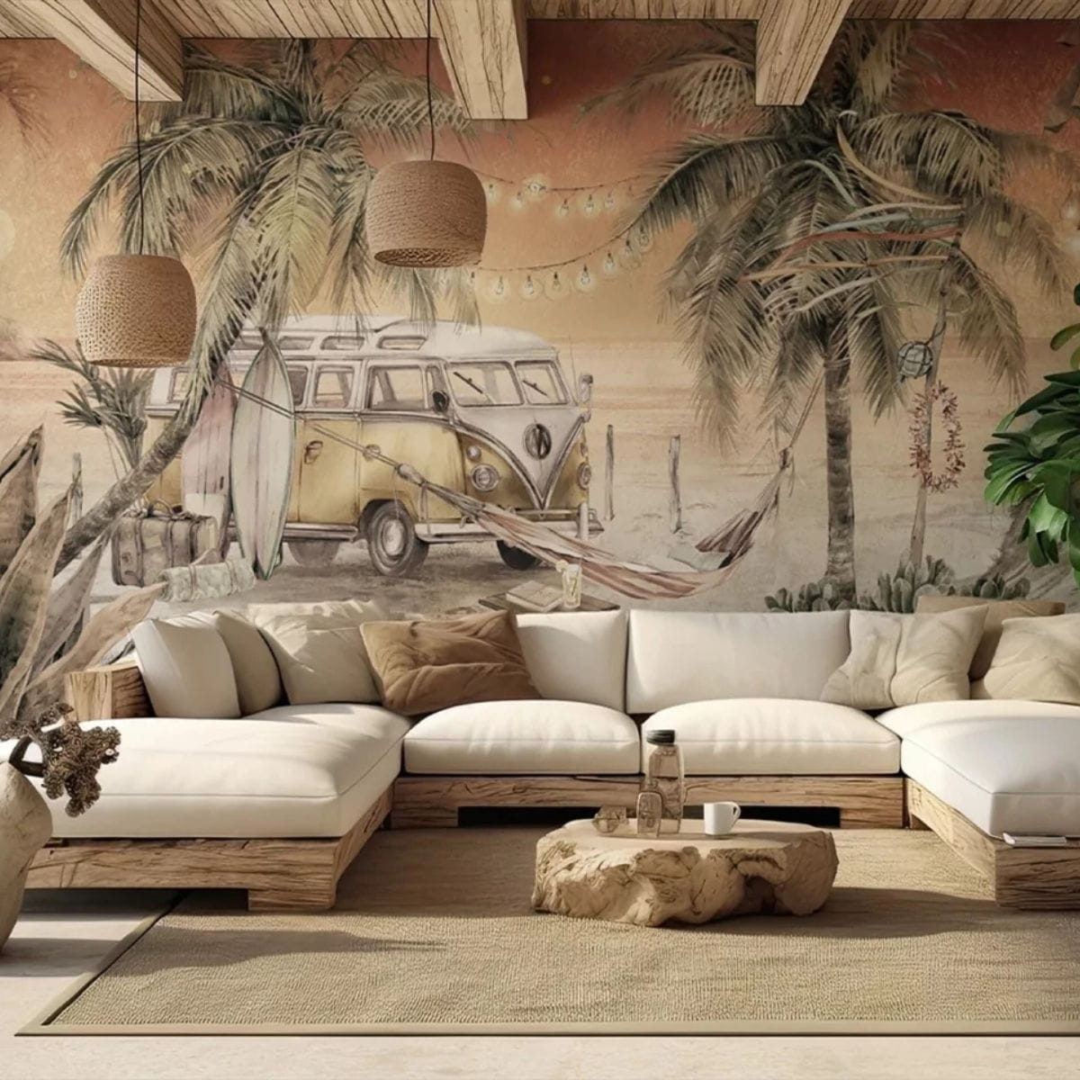 Tapeta z vanem i deskami surfingowymi - niebanalne wnętrza