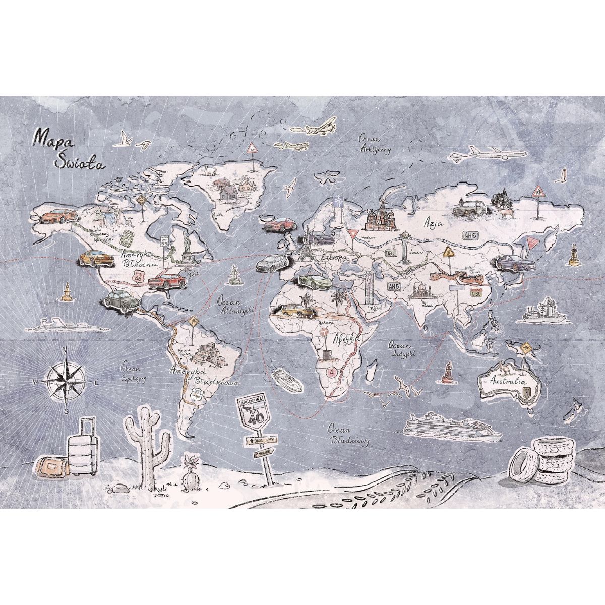 MALUMI - TAPETA DLA DZIECKA TRIP MAP JEANS