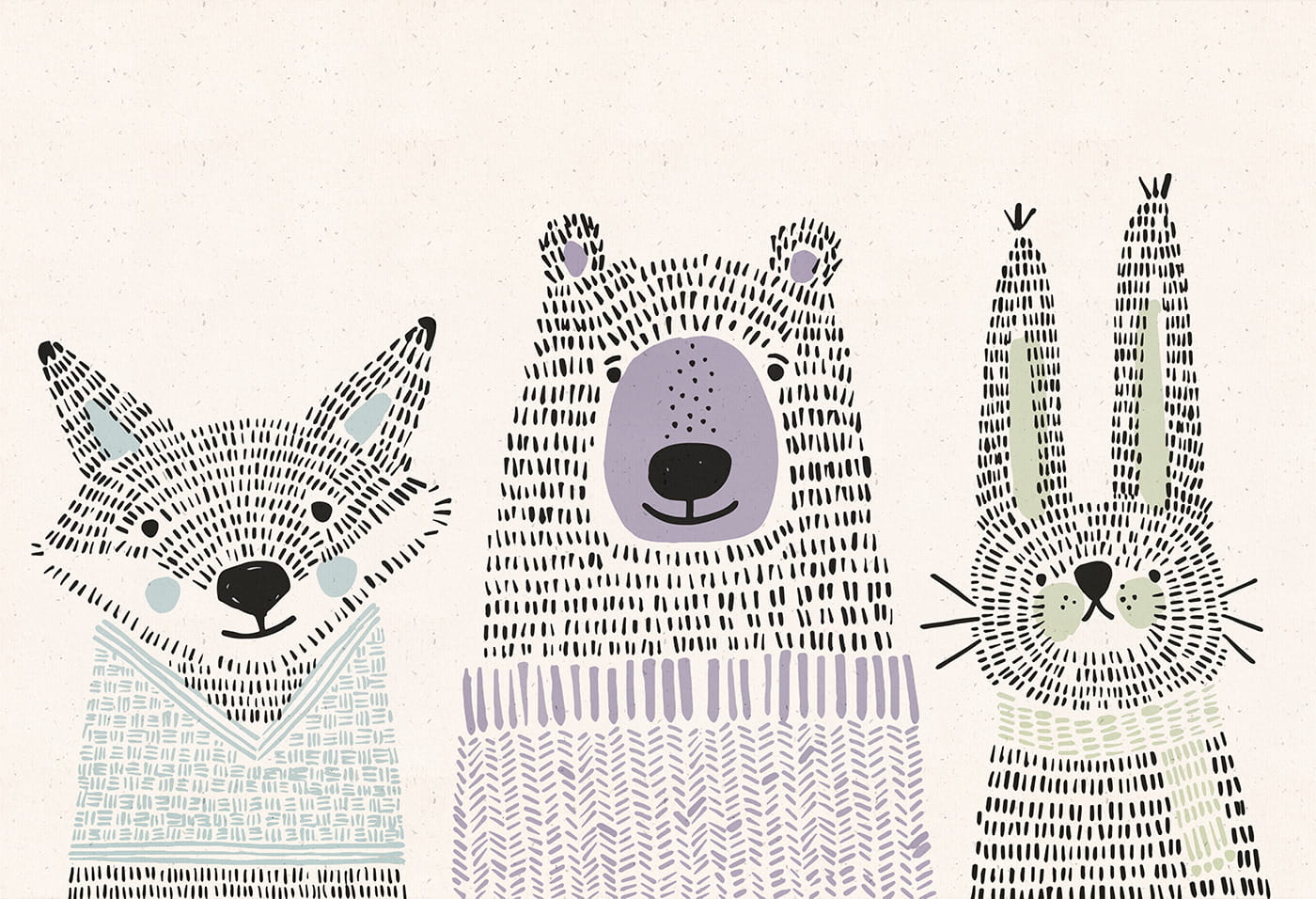 Stwórz z nami pokój dziecięcych marzeń! Tapeta z uroczym misiem, króliczkiem i lisem to idealna propozycja dla każdego malucha. Zwierzęta czekają, żeby zamieszkać w pokoju Twojego dziecka.