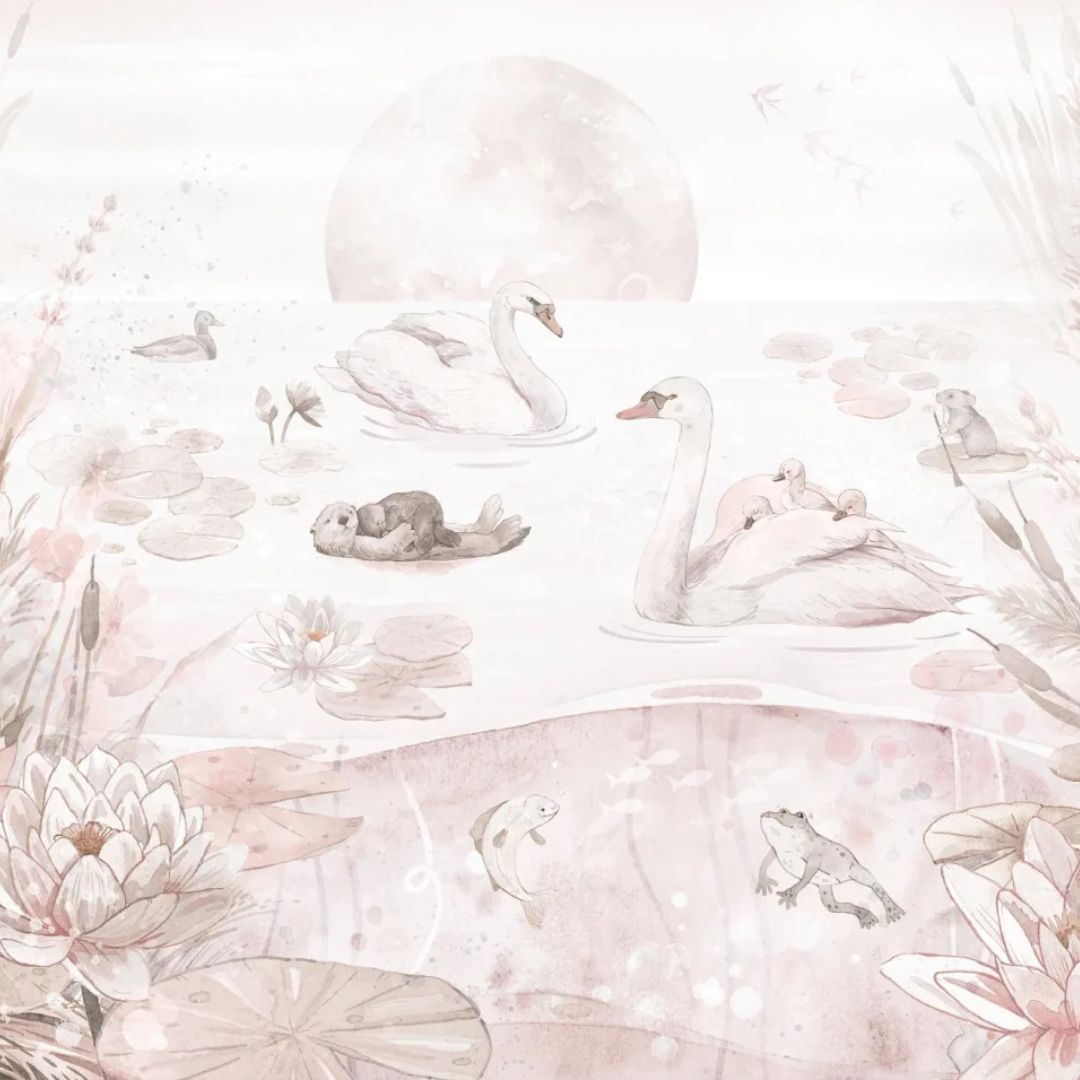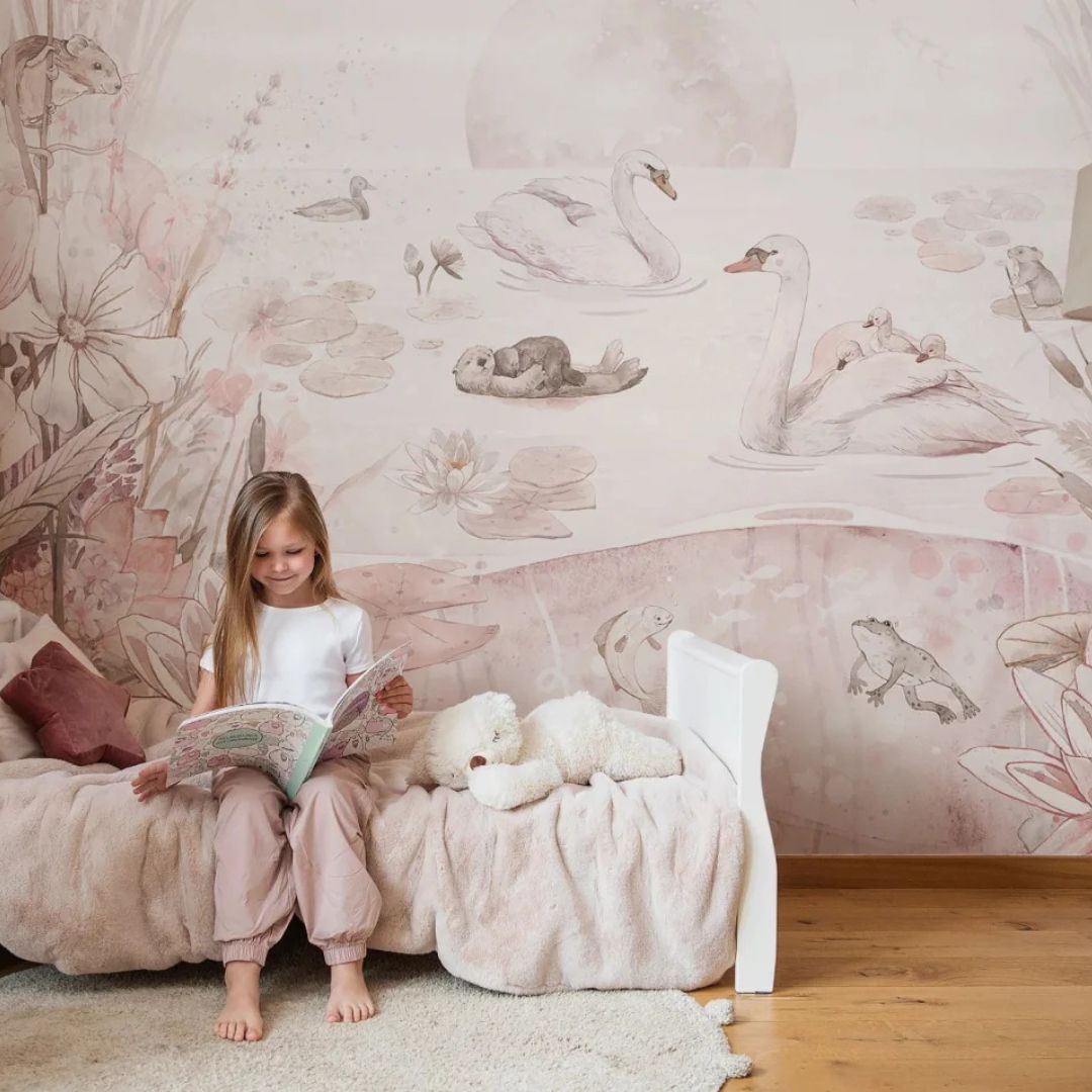 Tapeta z Jeziorem i Łabędziami – subtelny świat w pokoju dziewczynki