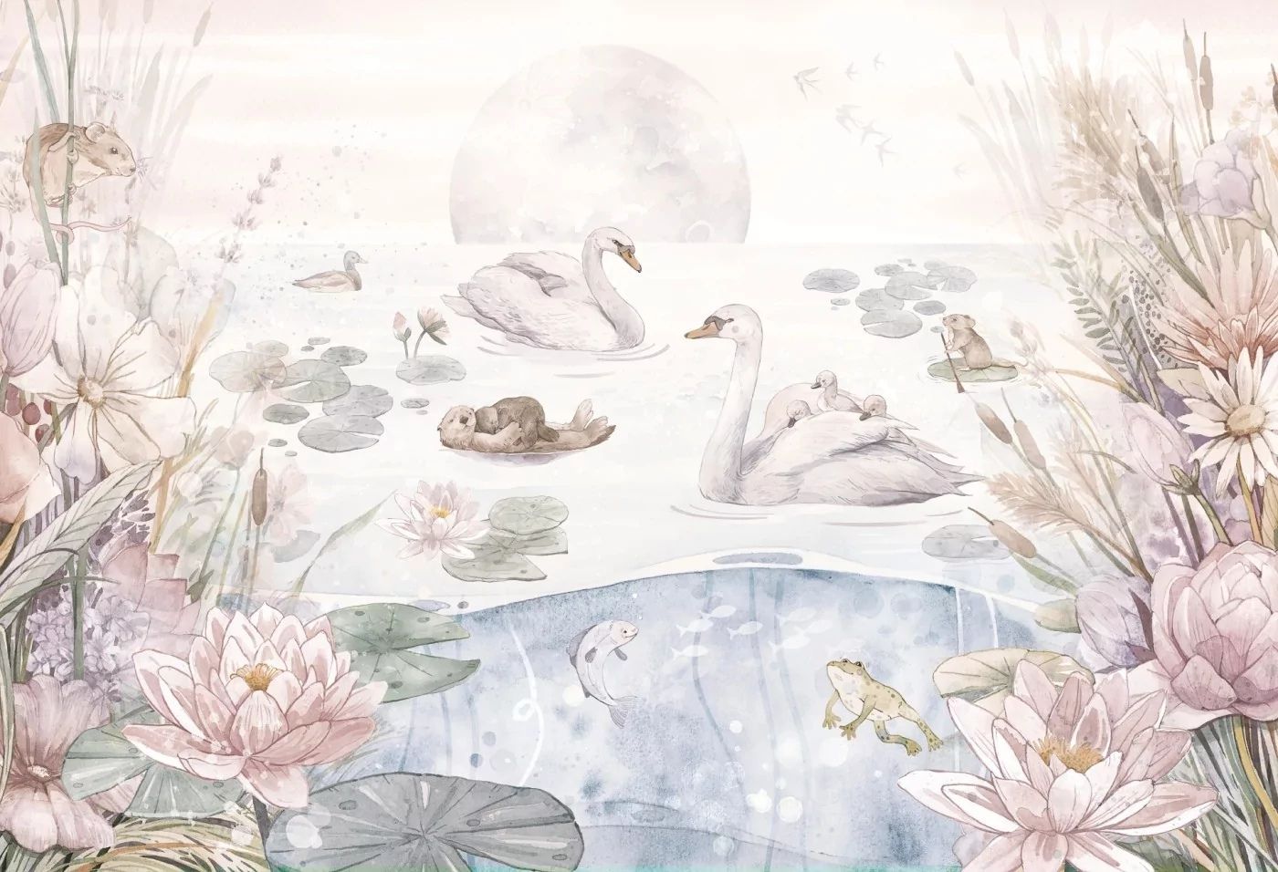 MALUMI - TAPETA DLA DZIEWCZYNKI JEZIORO ŁABĘDZIE SWAN LAKE PASTEL