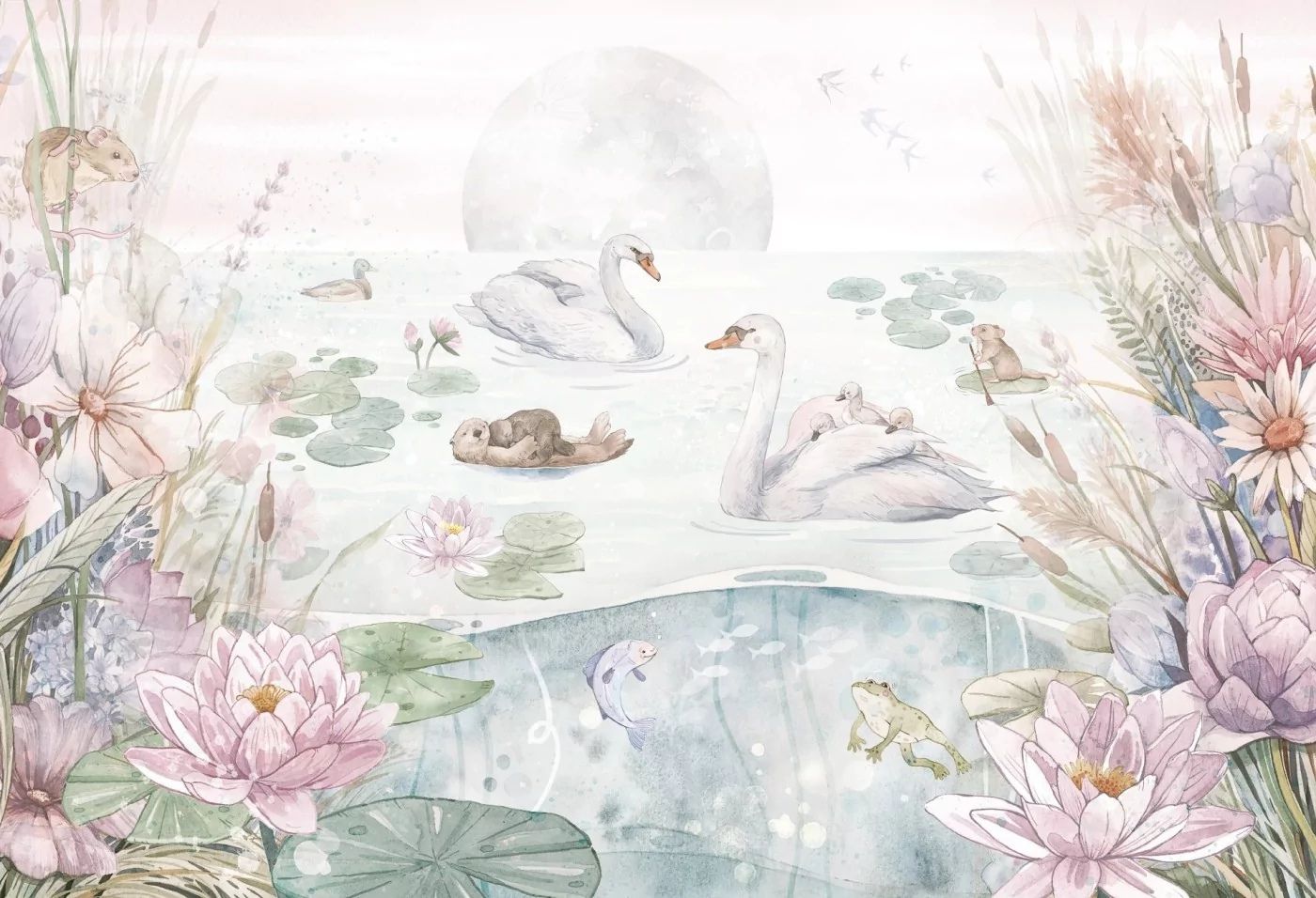 MALUMI - TAPETA DLA DZIEWCZYNKI JEZIORO ŁABĘDZIE SWAN LAKE RAINBOW