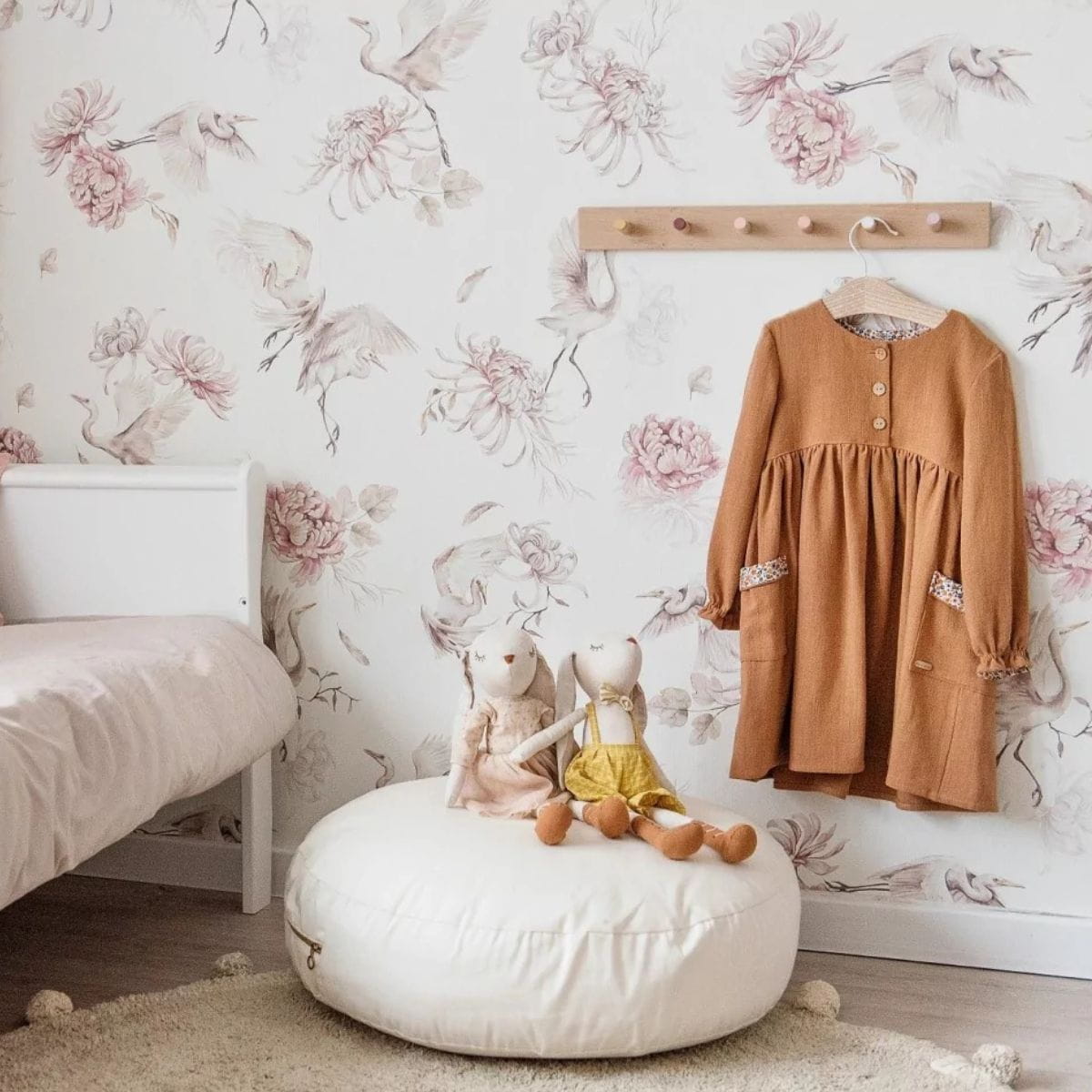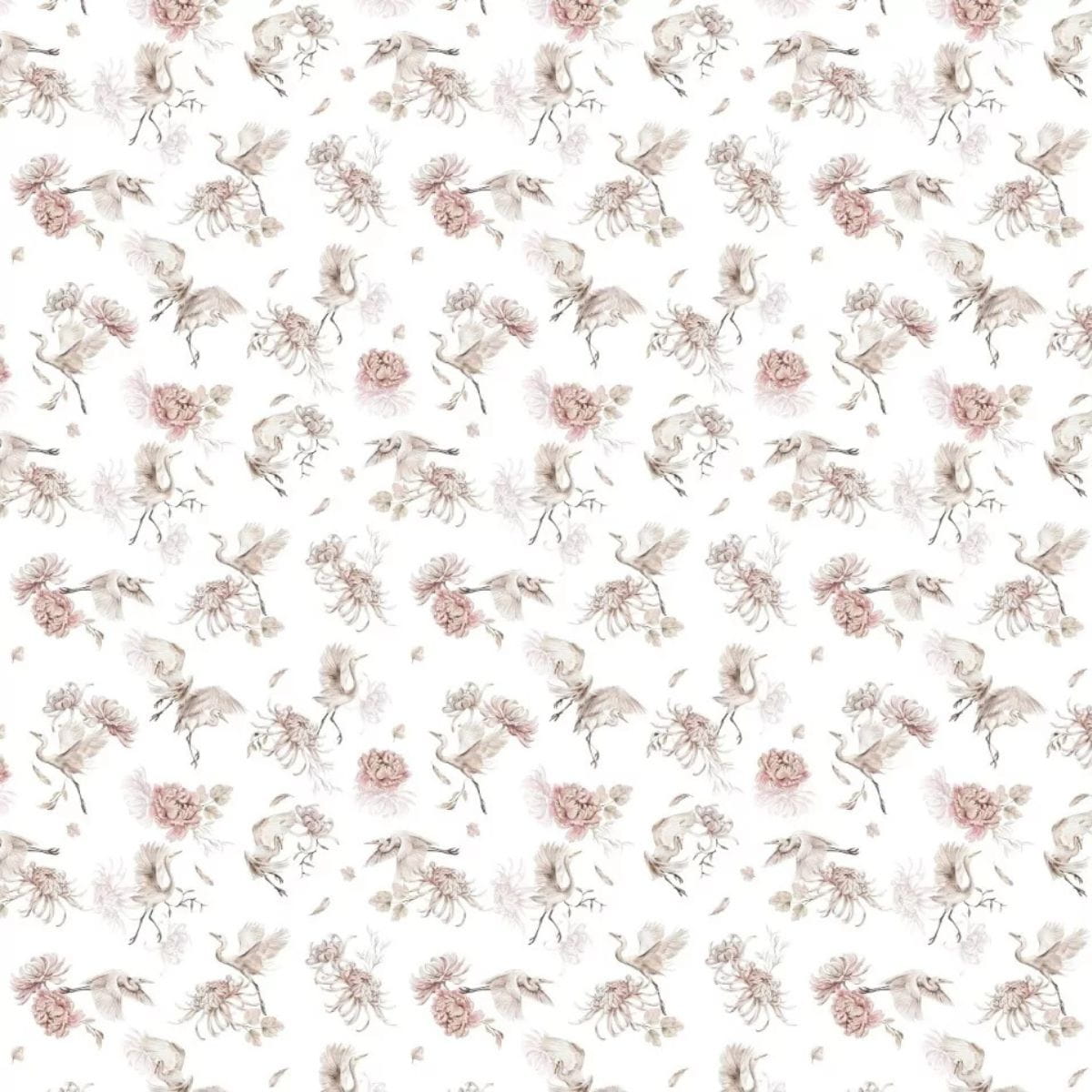 Piękna tapeta w czaple i kwiaty malowane akwarelą nada wnętrzu niesamowitego klimatu i stylu.