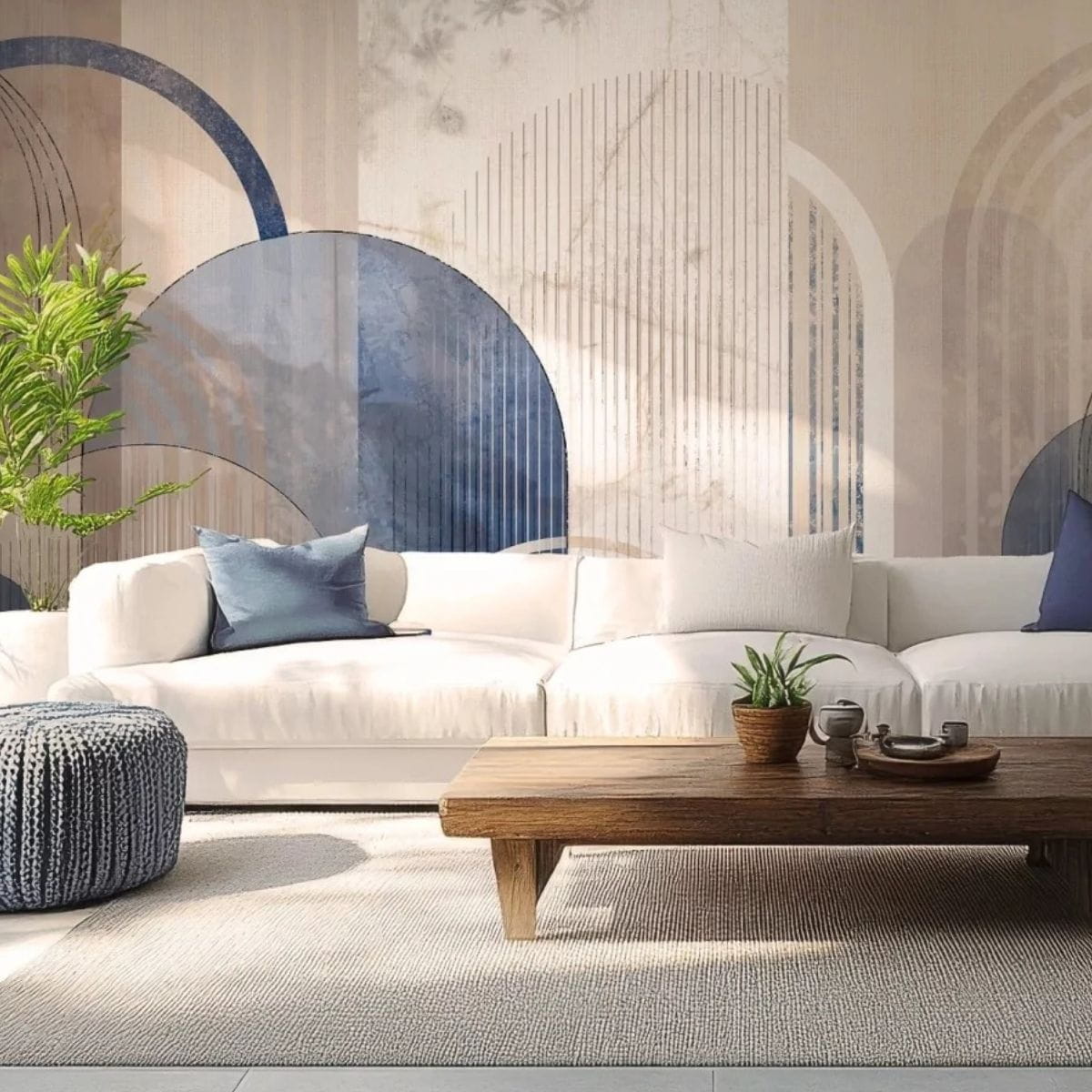 Delikatna geometria i neutralna kolorystyka sprawiają, że tapeta łatwo dopasowuje się do innych elementów wystroju – od minimalistycznych mebli, przez naturalne drewno, aż po bardziej wyraziste akcenty dekoracyjne.