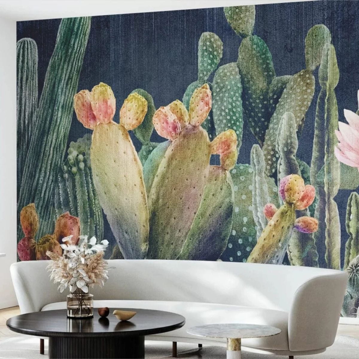 Tapeta z kaktusami to idealna propozycja jeśli chcesz wprowadzić do wnętrza tropikalny klimat.