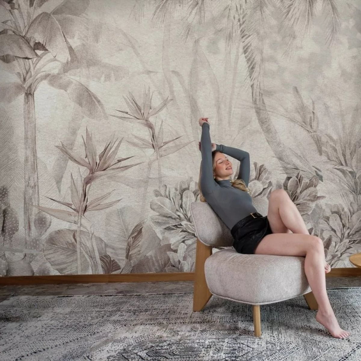 Tapeta z egzotycznymi roślinami w szarych odcieniach - stwórz z nami pokój marzeń
