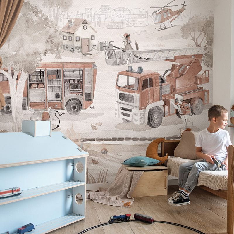 MALUMI - TAPETA TAPETA DLA DZIECKA STRAŻ POŻARNA FIRE PATROL RETRO