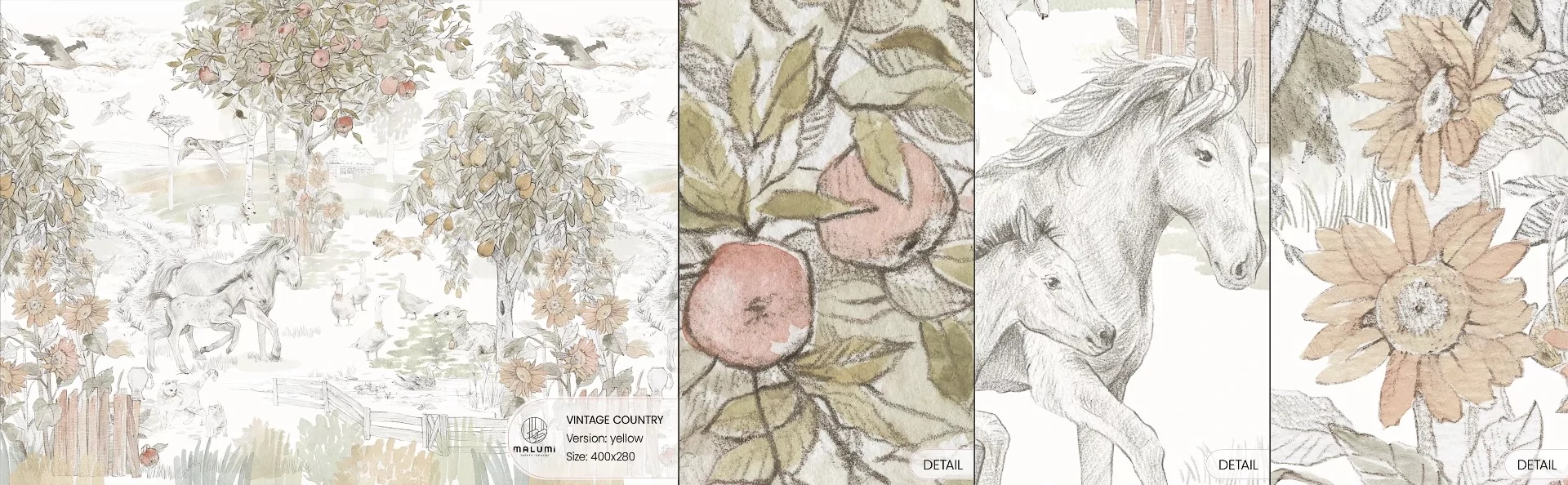 MALUMI VINTAGE COUNTRY YELLOW - PRÓBKA TAPETY