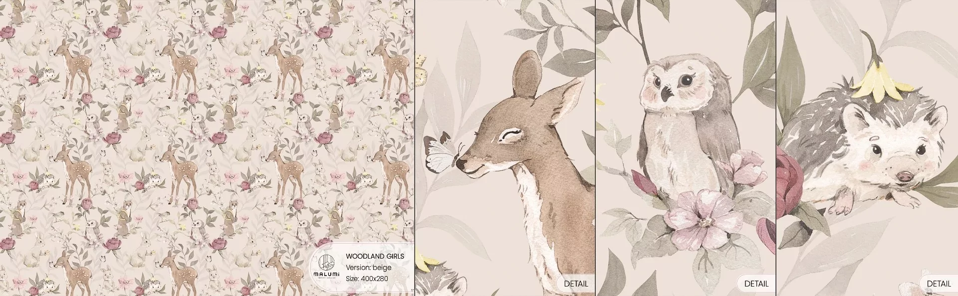 MALUMI WOODLAND GIRLS BEIGE - PRÓBKA TAPETY