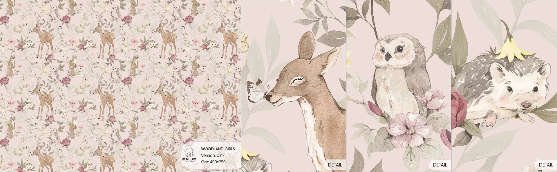MALUMI WOODLAND GIRLS PINK - PRÓBKA TAPETY