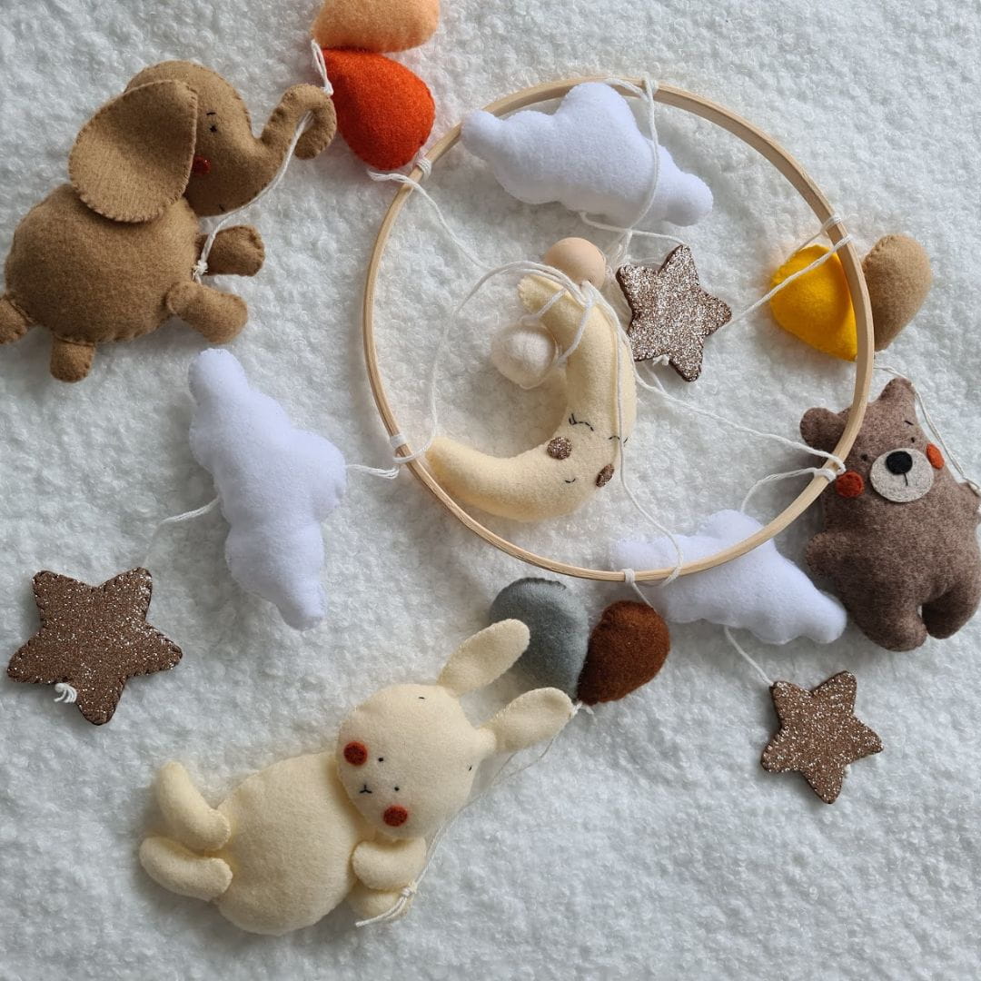 Ręczne wykonanie z wysokiej jakości filcu, miękkiej wełny czesankowej oraz antyalergicznego wypełniacza sprawia, że karuzela jest zarówno bezpieczna, jak i estetyczna.