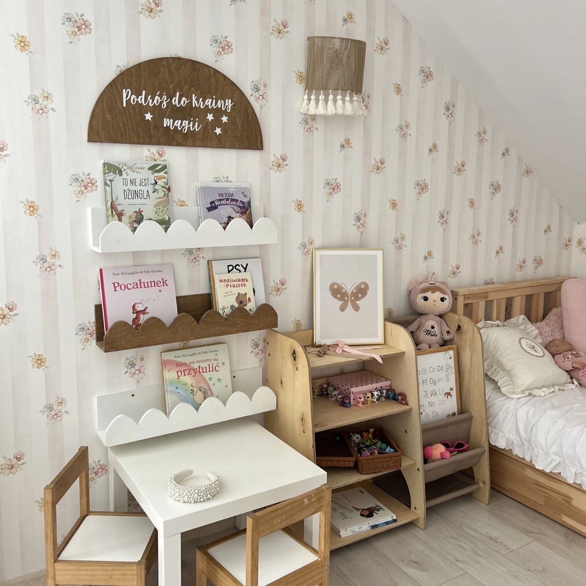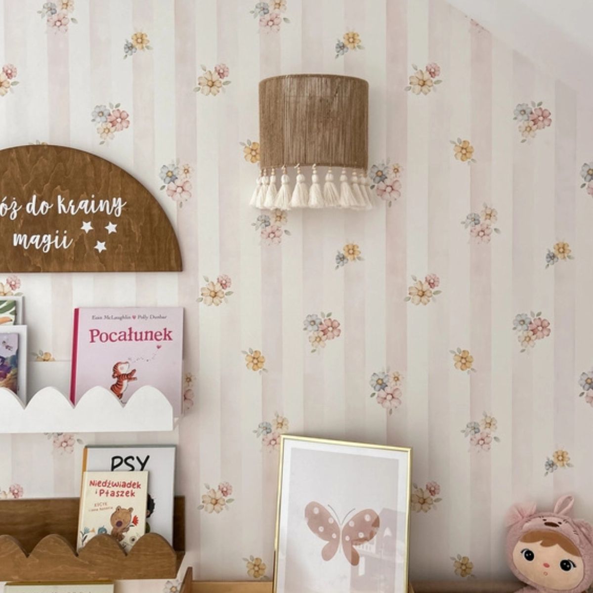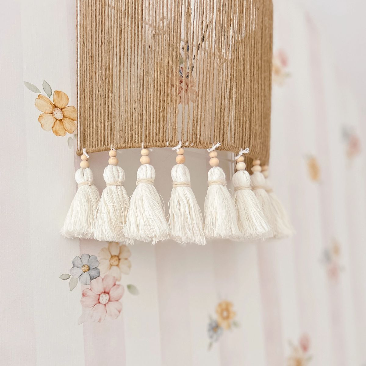 Materiały: sznurek jutowy, drewniane koraliki, bawełniane frędzle – wysokiej jakości, naturalne materiały, które tworzą ciepły, przytulny klimat