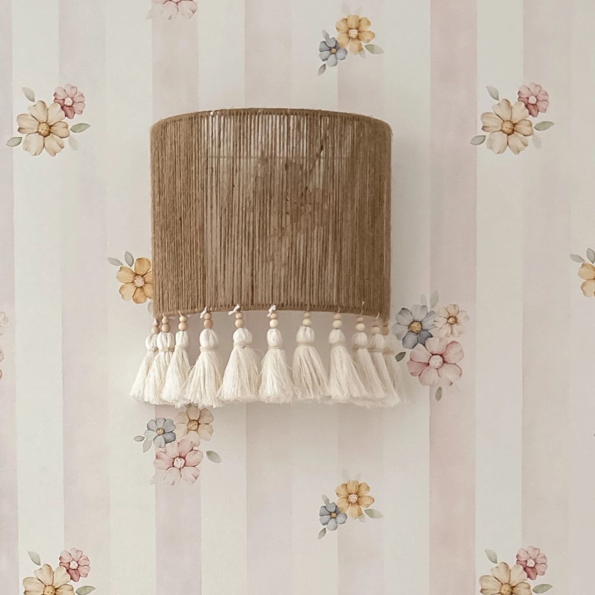 Ręcznie Robiony Kinkiet Ścienny w Stylu Boho – 100% Handmade | Dekoracja z Frędzlami i Drewnianymi Koralikami